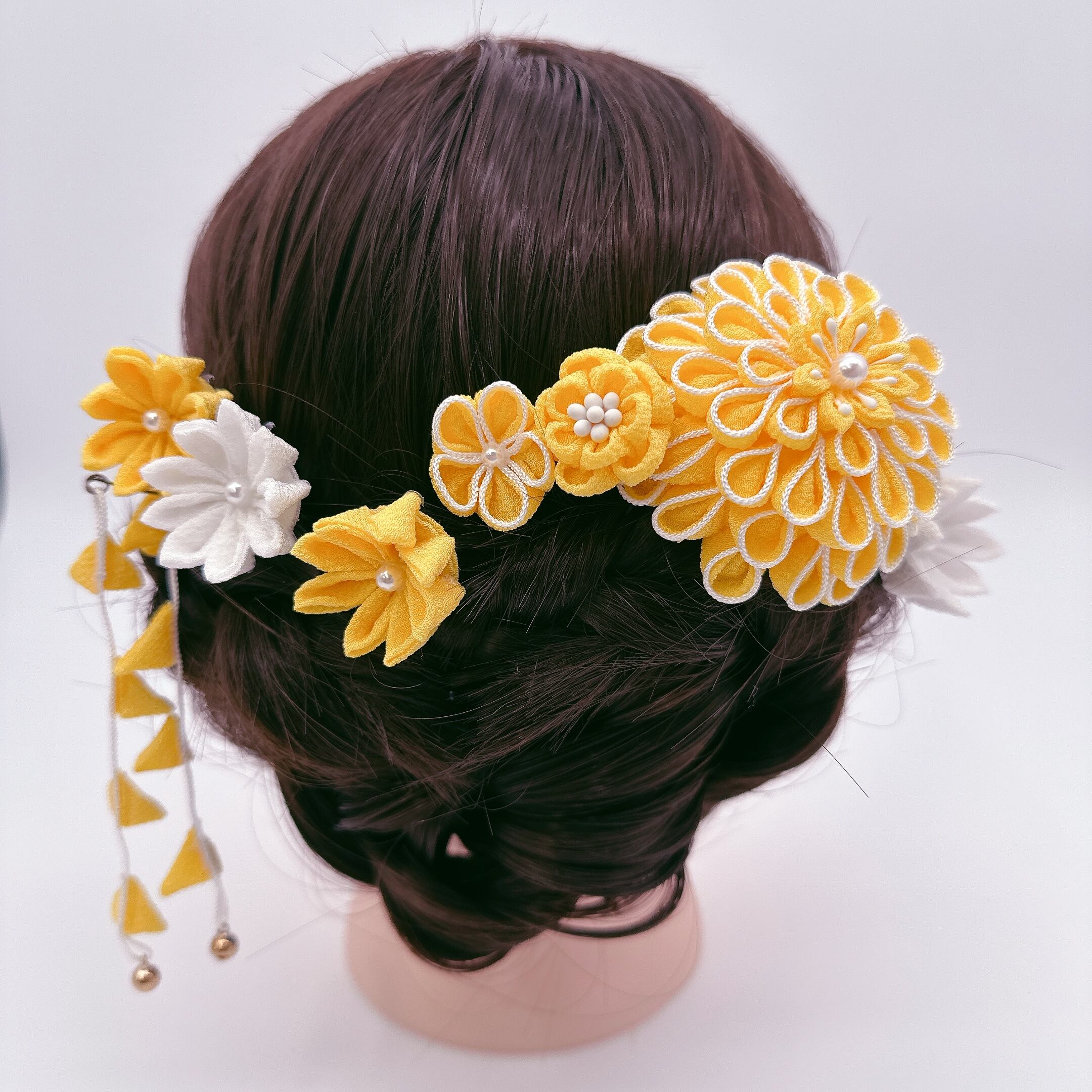 【つまみ細工のかんざしセット】かんざしセット 黄×白