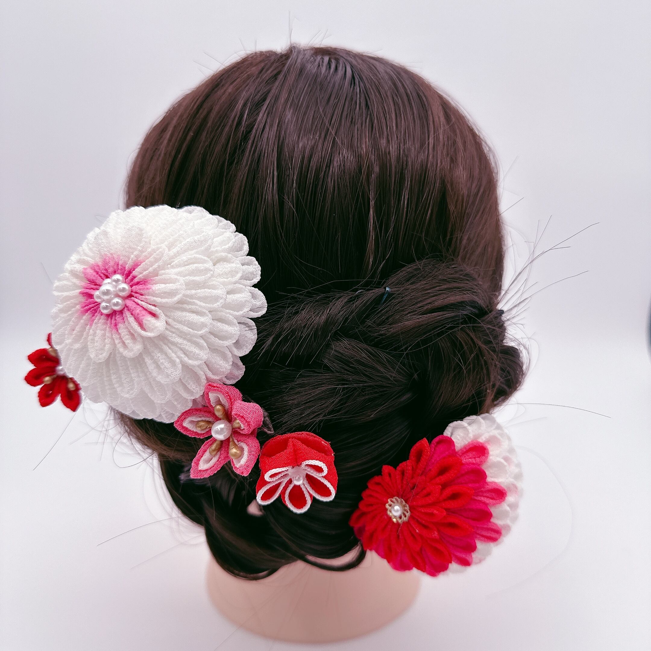 【つまみ細工のかんざしセット】かんざしセット 紅白