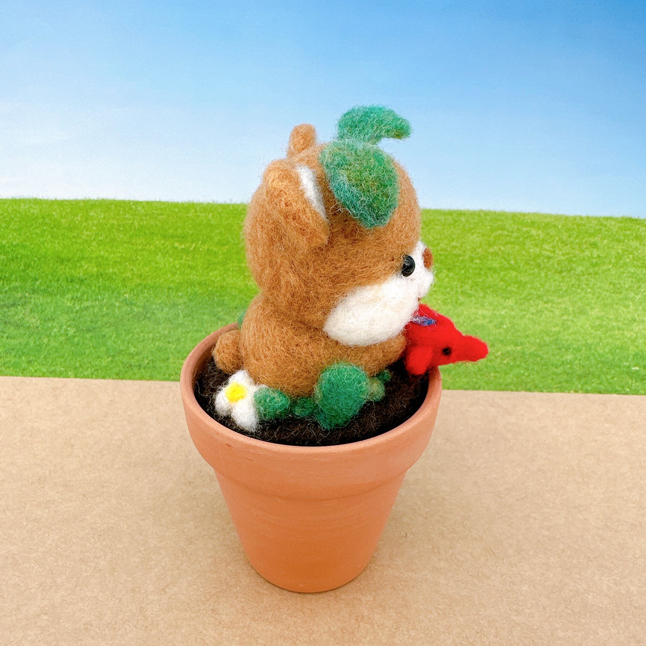 羊毛フェルト細工部分を持ち上げると植木鉢を落としてしまう危険性があります。