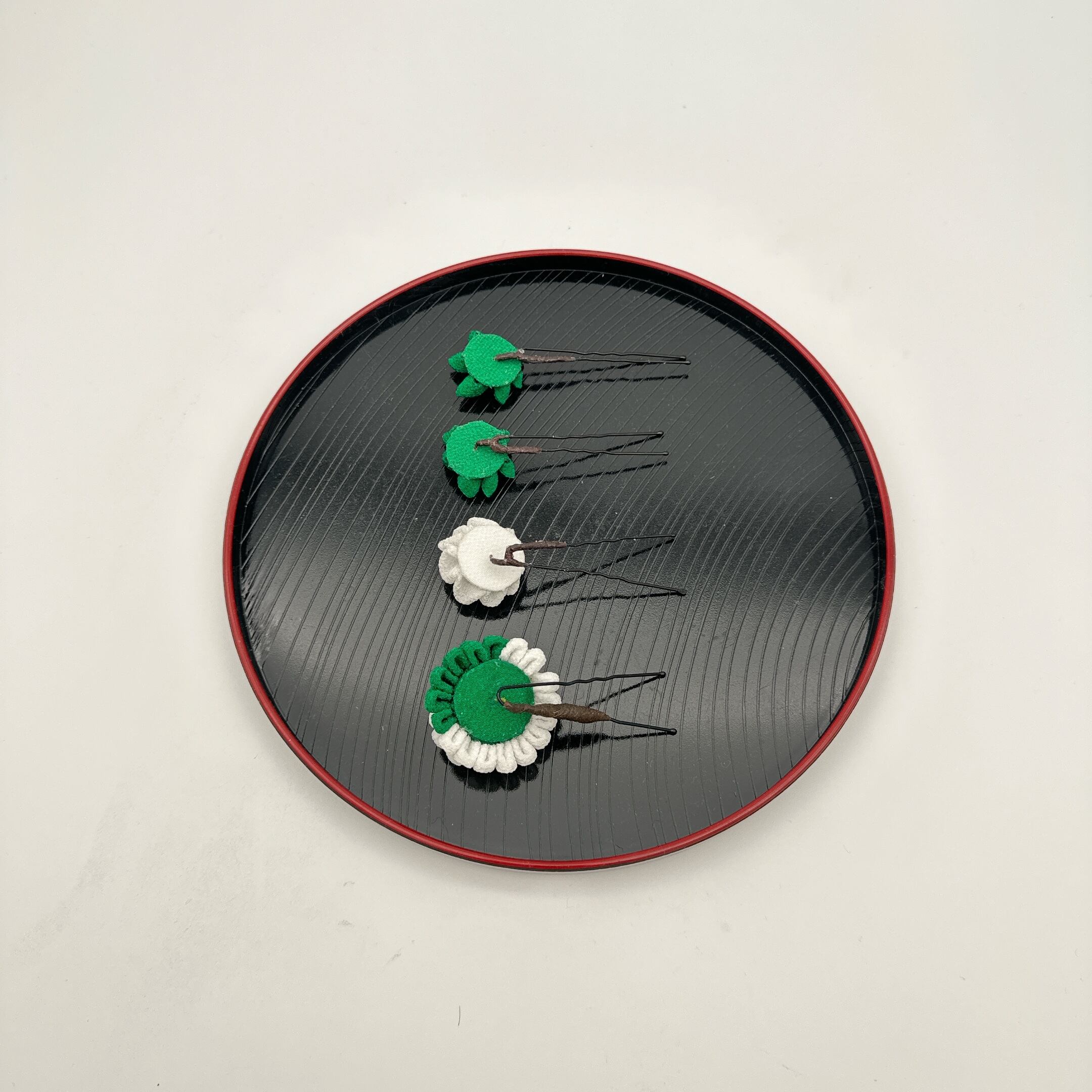 【つまみ細工のかんざしセット】 緑×小花(白)③