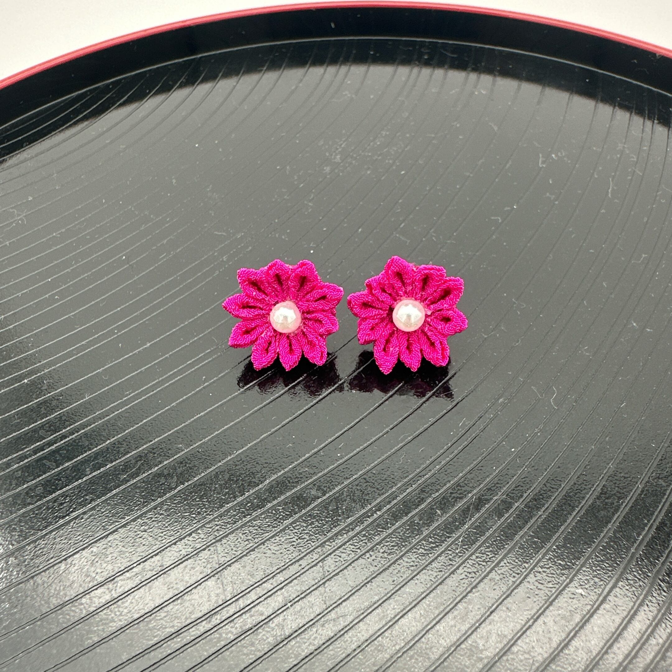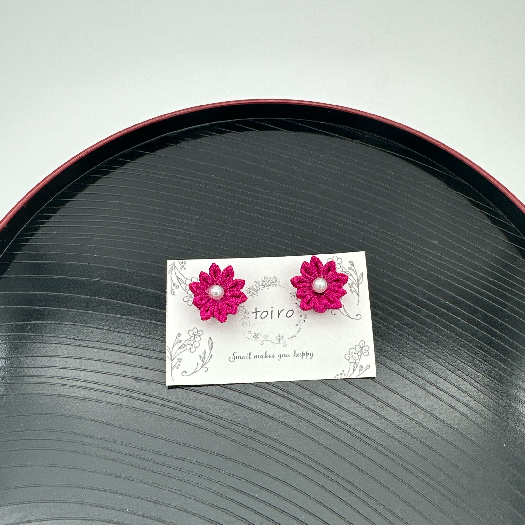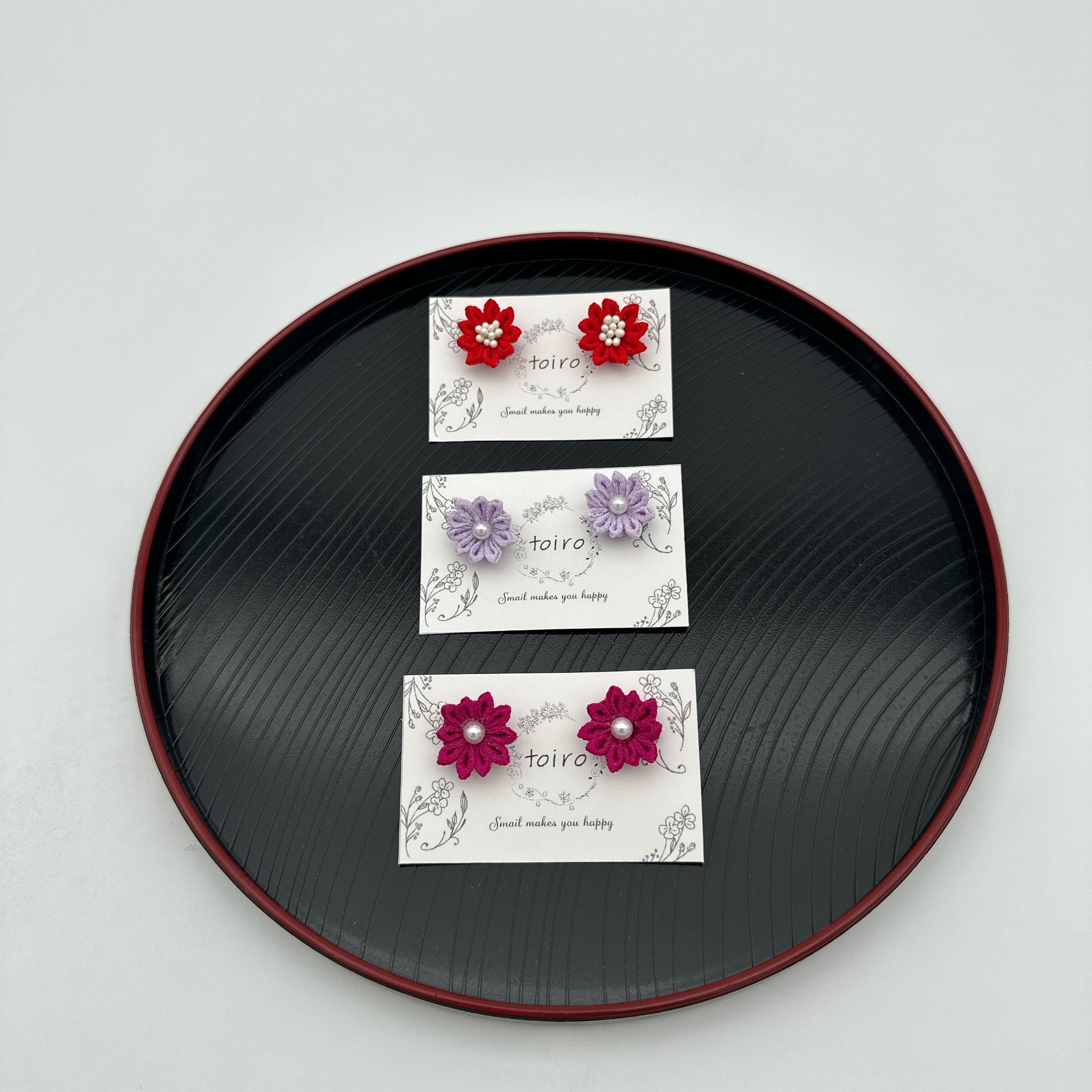 つまみ細工の素敵なお花のモチーフの可愛いピアスとなっておりますので、