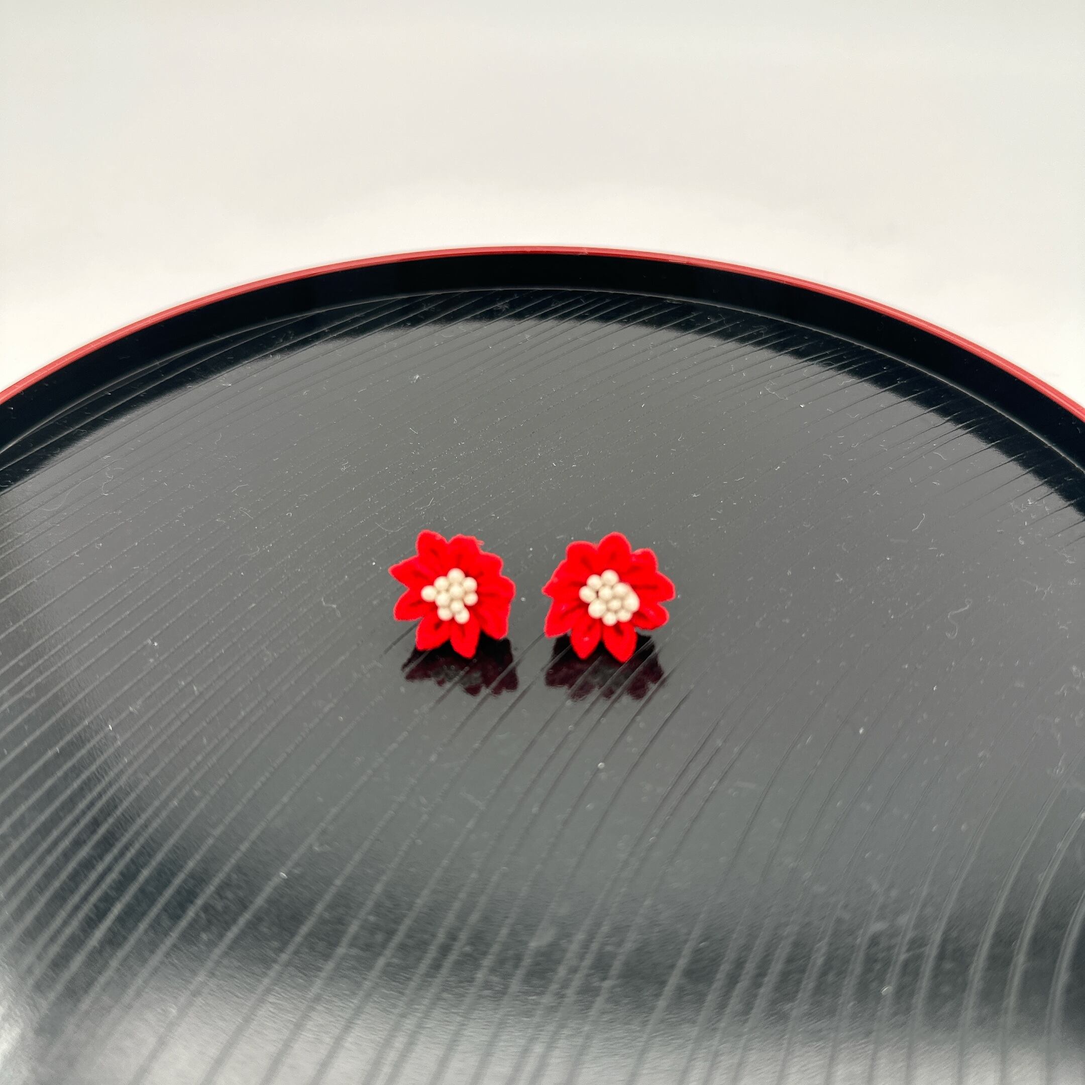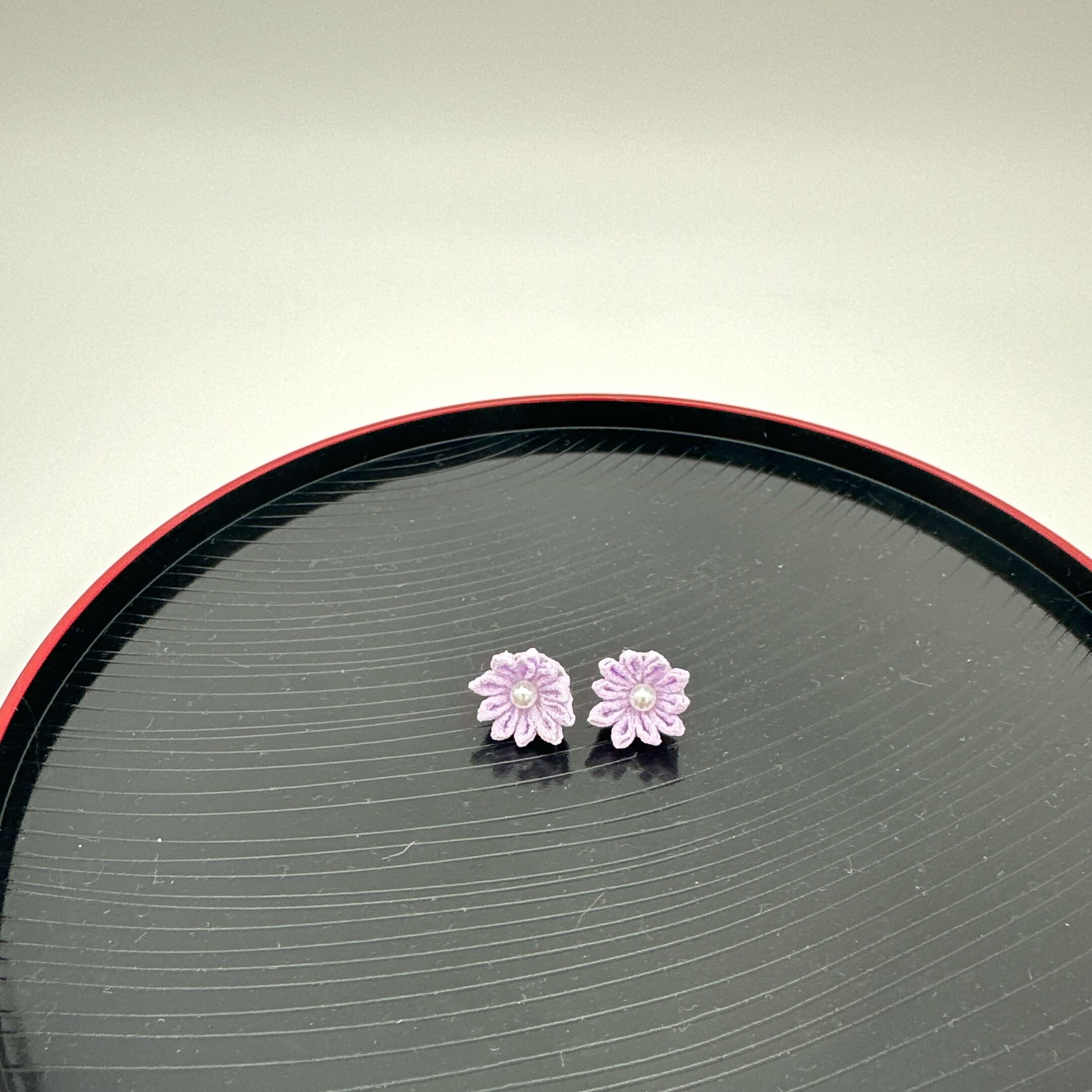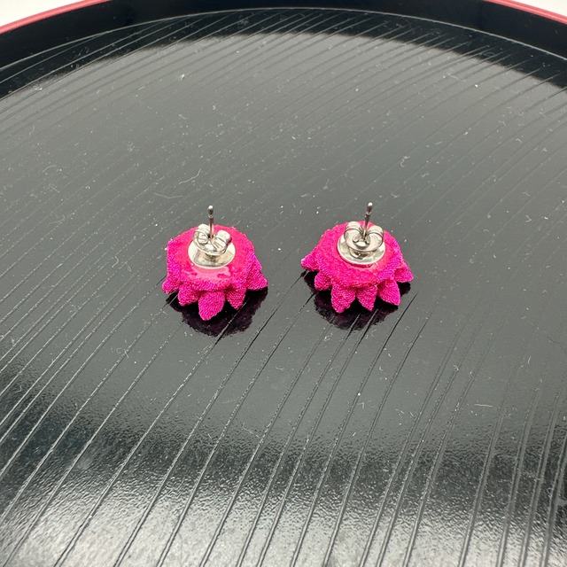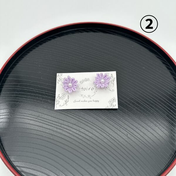 つまみ細工の素敵なお花のモチーフの可愛いピアスとなっておりますので、