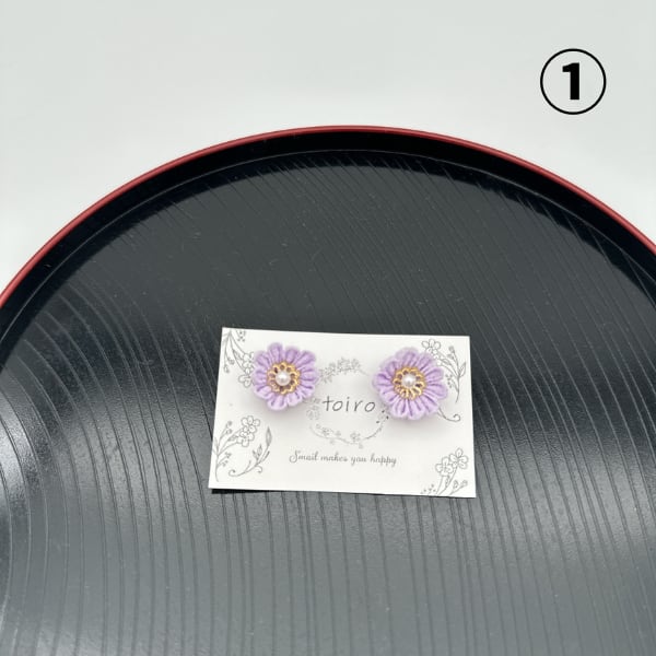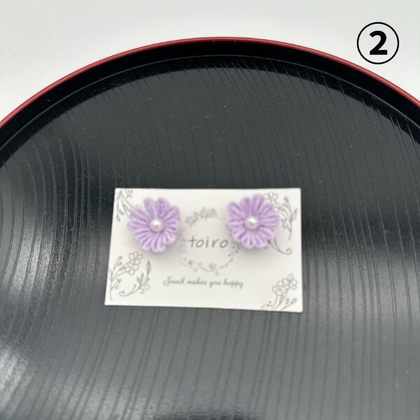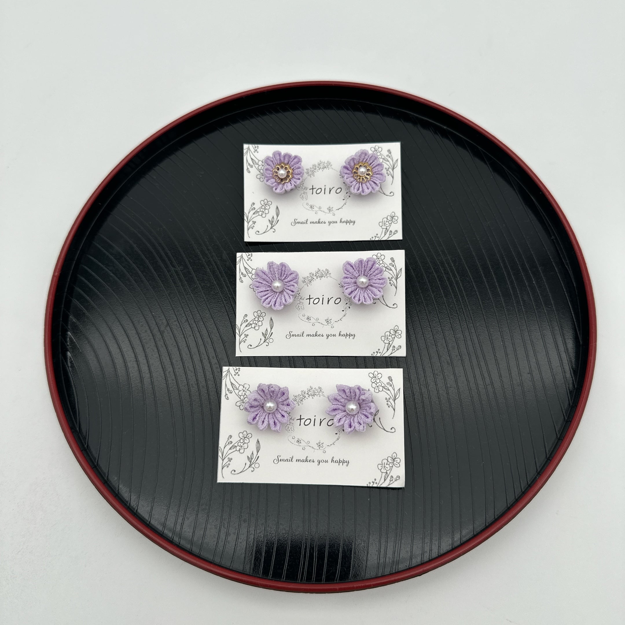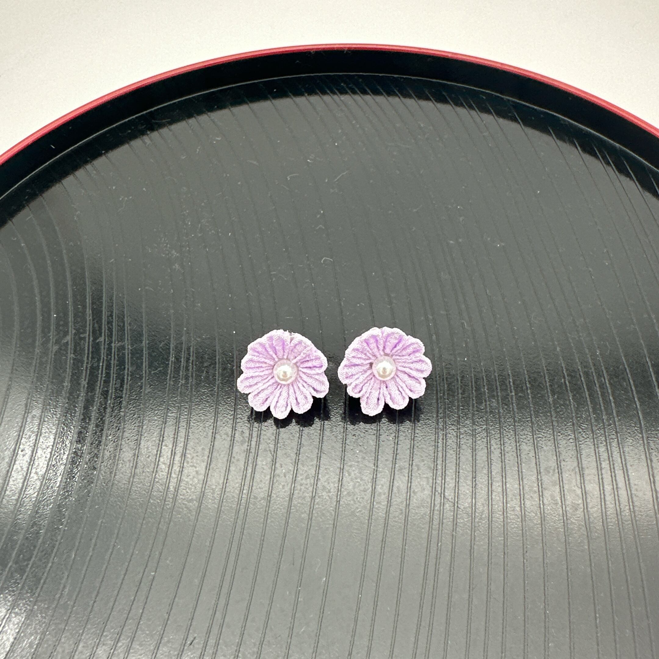 つまみ細工の素敵なお花のモチーフの可愛いピアスとなっておりますので、