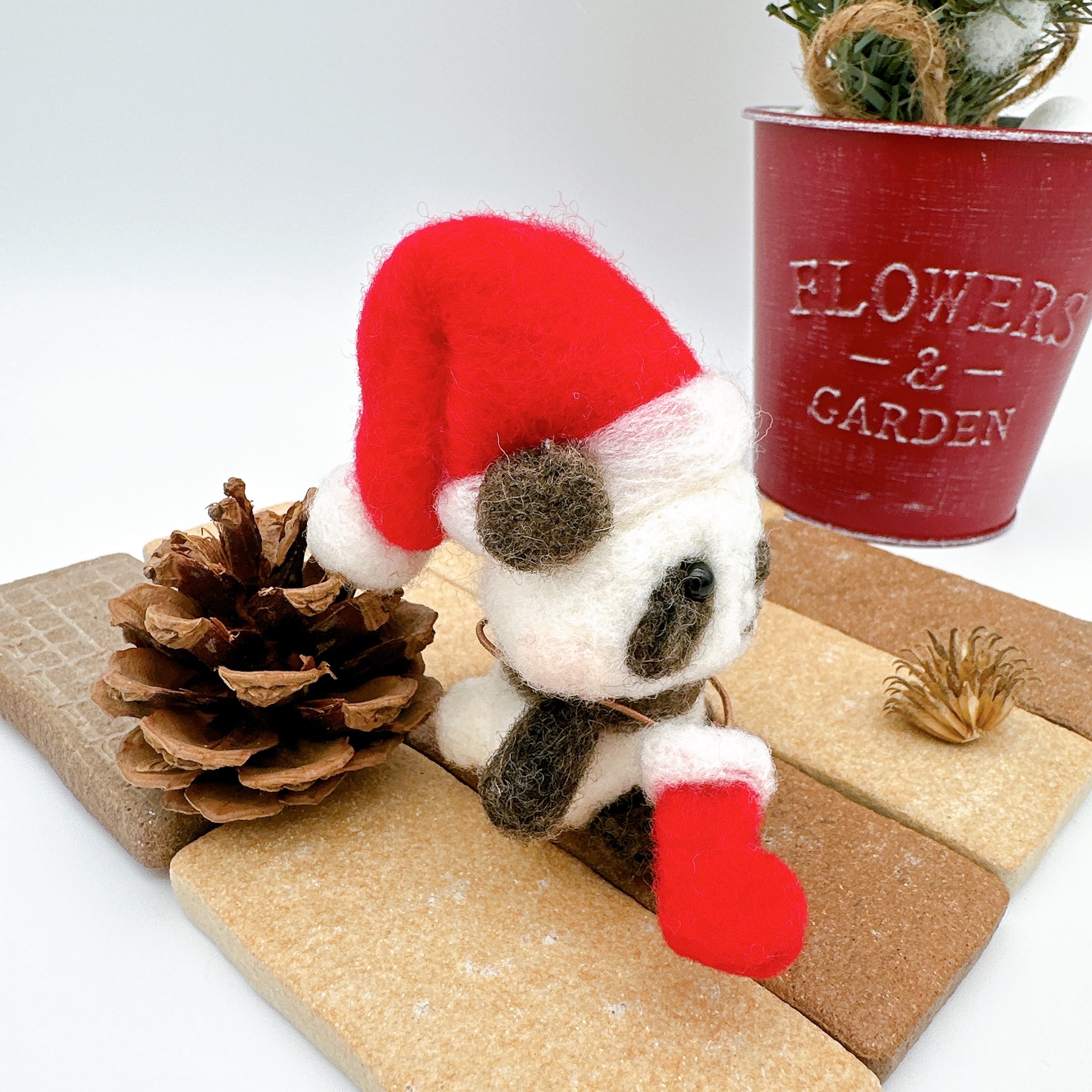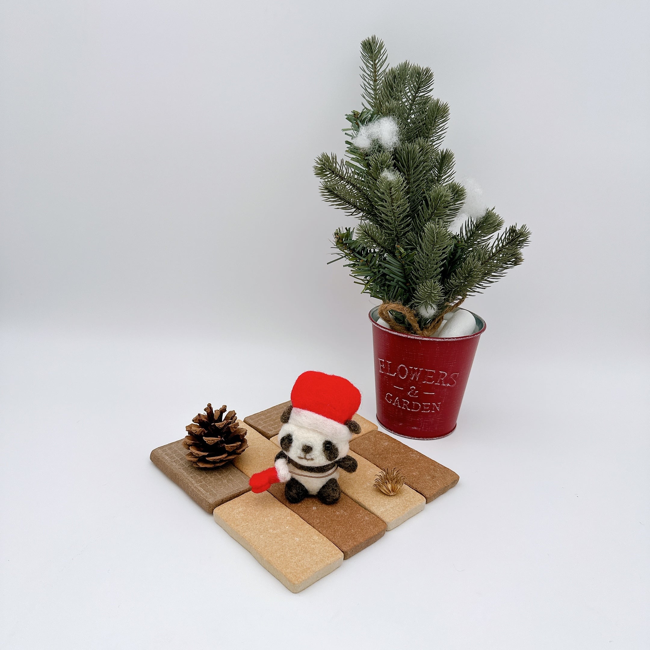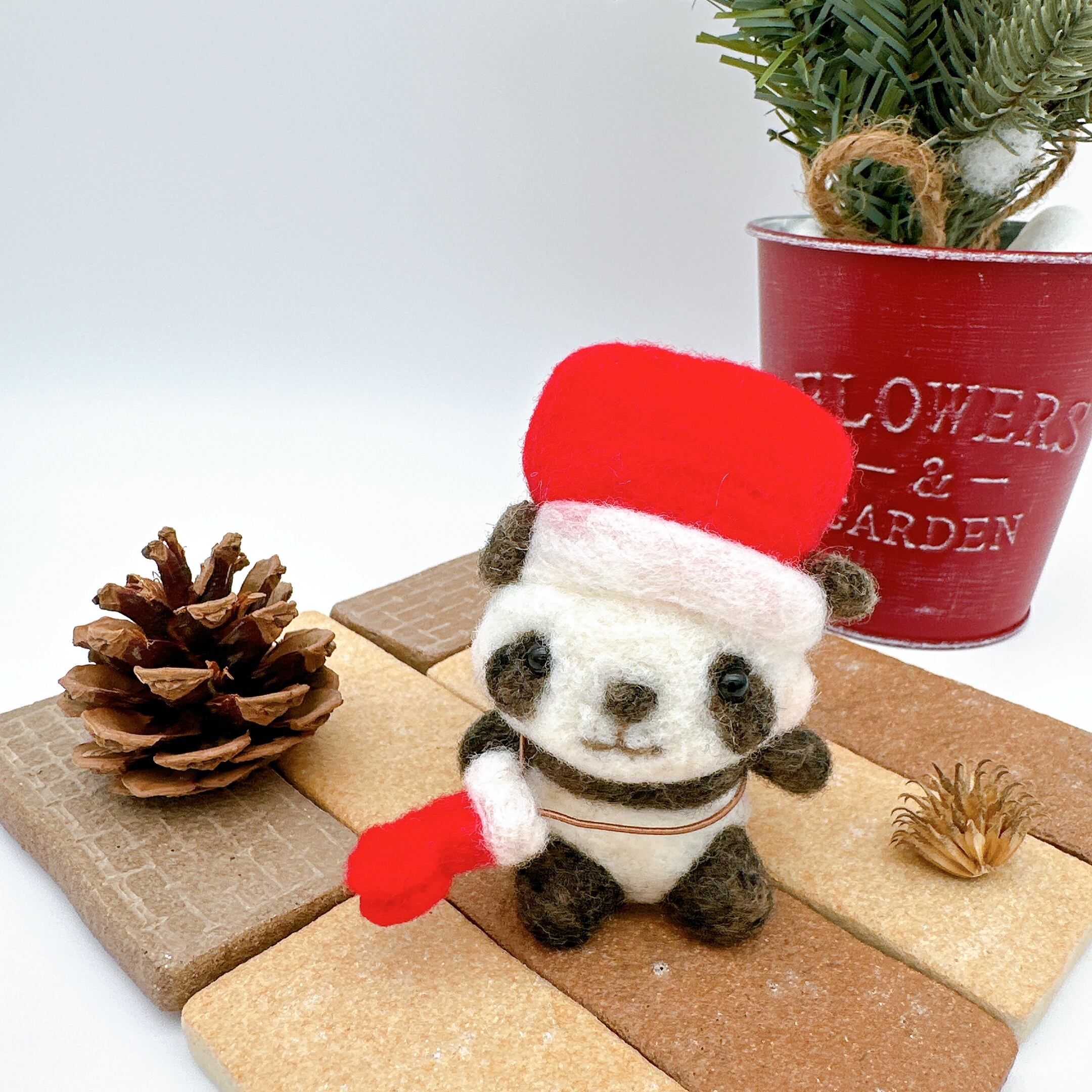 愛らしい表情のパンダがサンタ帽を被った羊毛フェルトです!
