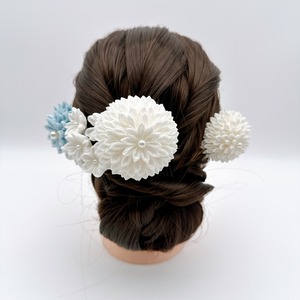 【つまみ細工のかんざしセット】かんざしセット 白ダリアかんざしと水色ダリアかんざし