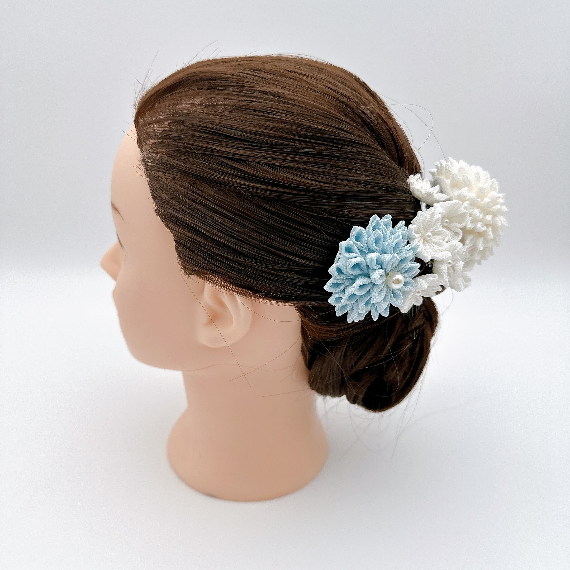 涼やかな風が吹いているような、水色と白のコラボがあなたの髪を飾ります。