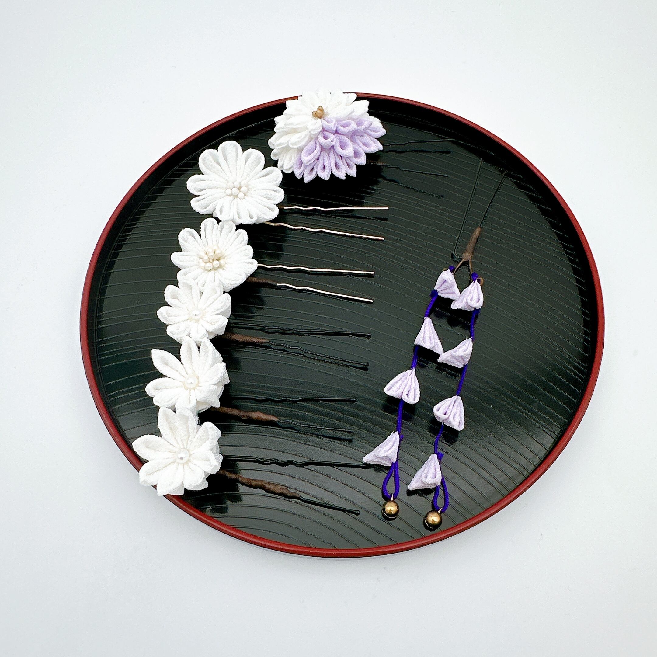 【つまみ細工のかんざしセット】かんざしセット 白・薄紫セット