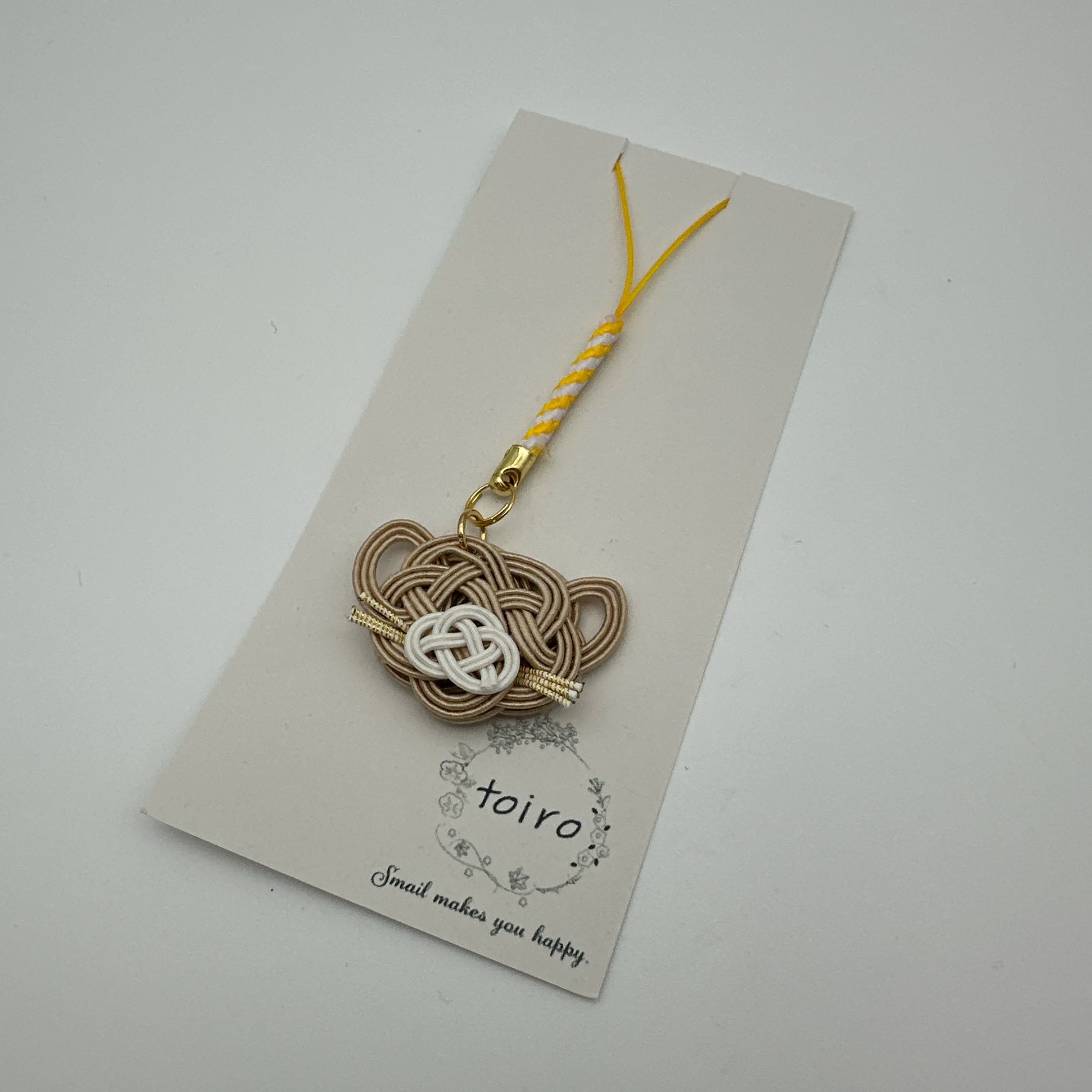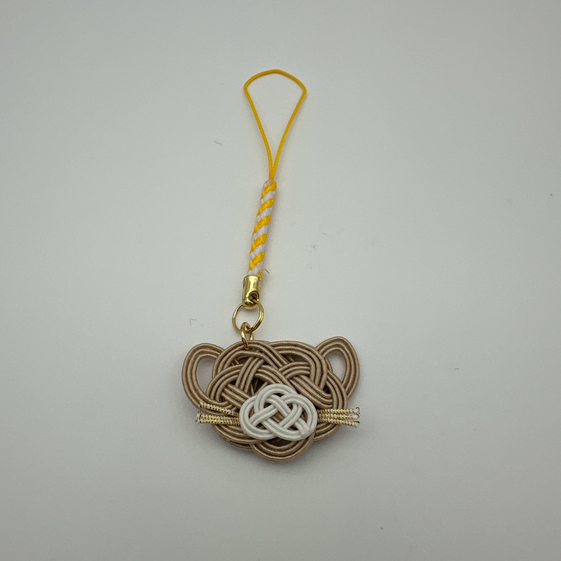 【水引】水引ストラップ 猫お守りキーホルダー ベージュ