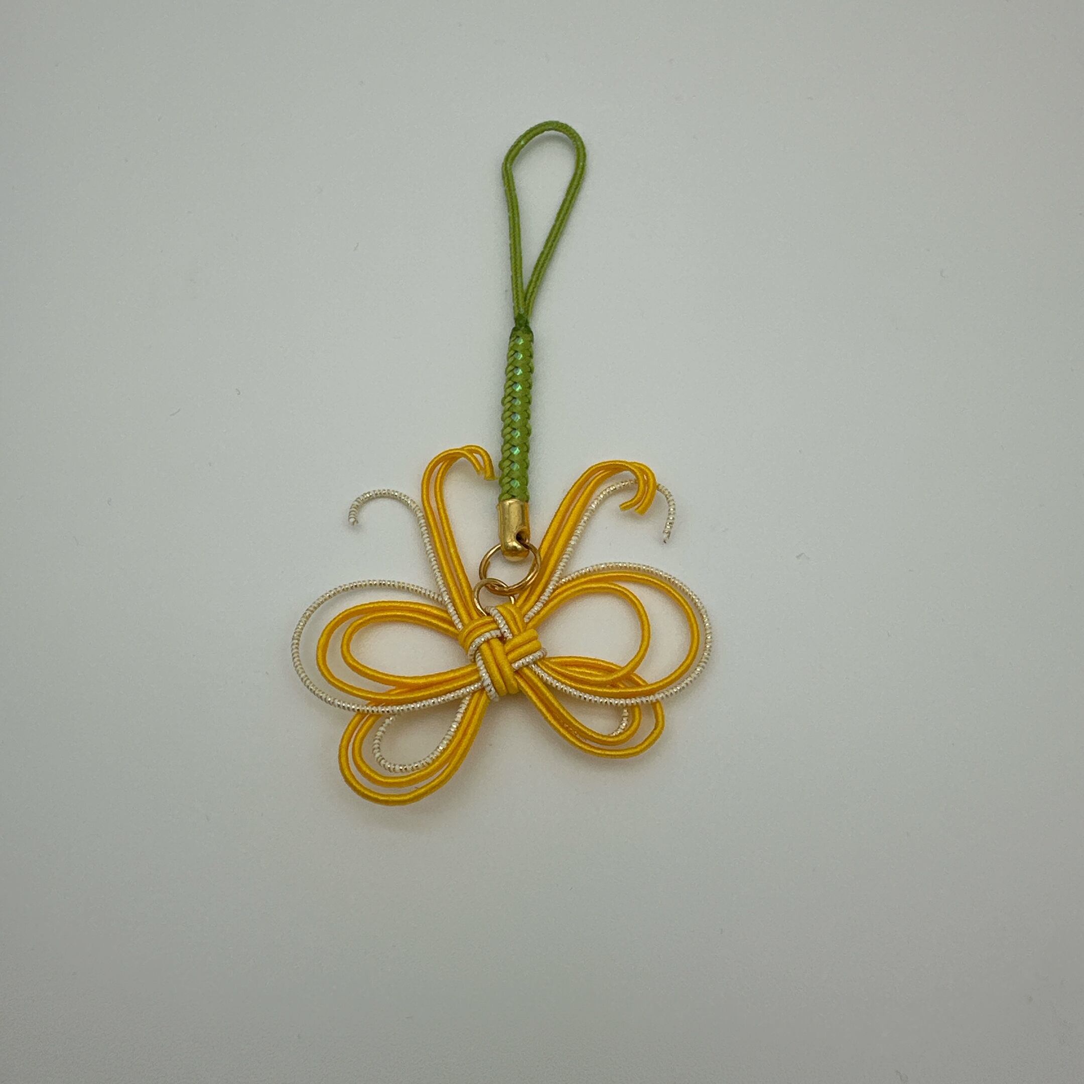M192-3 水引ストラップ 蝶キーホルダー 黄×ゴールド