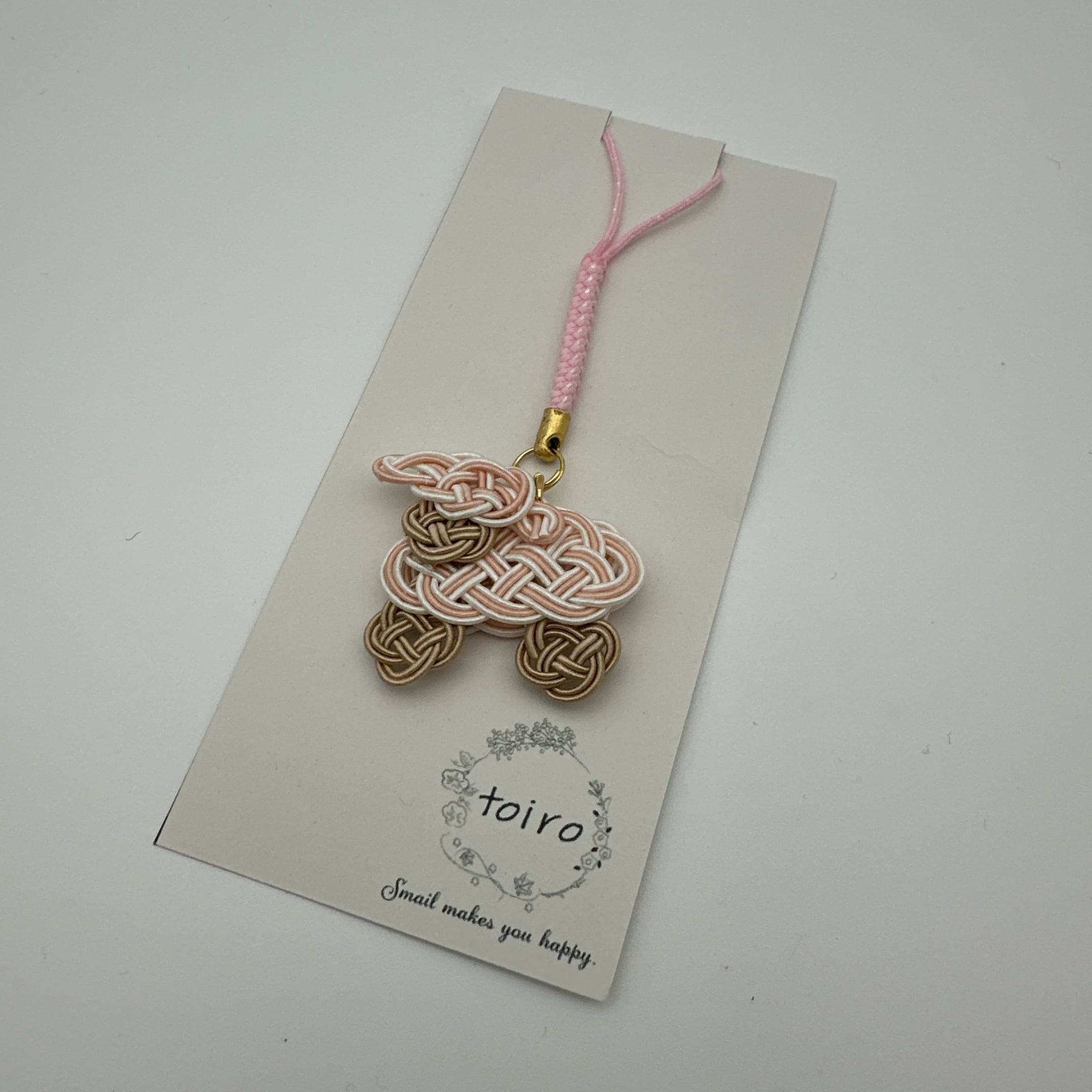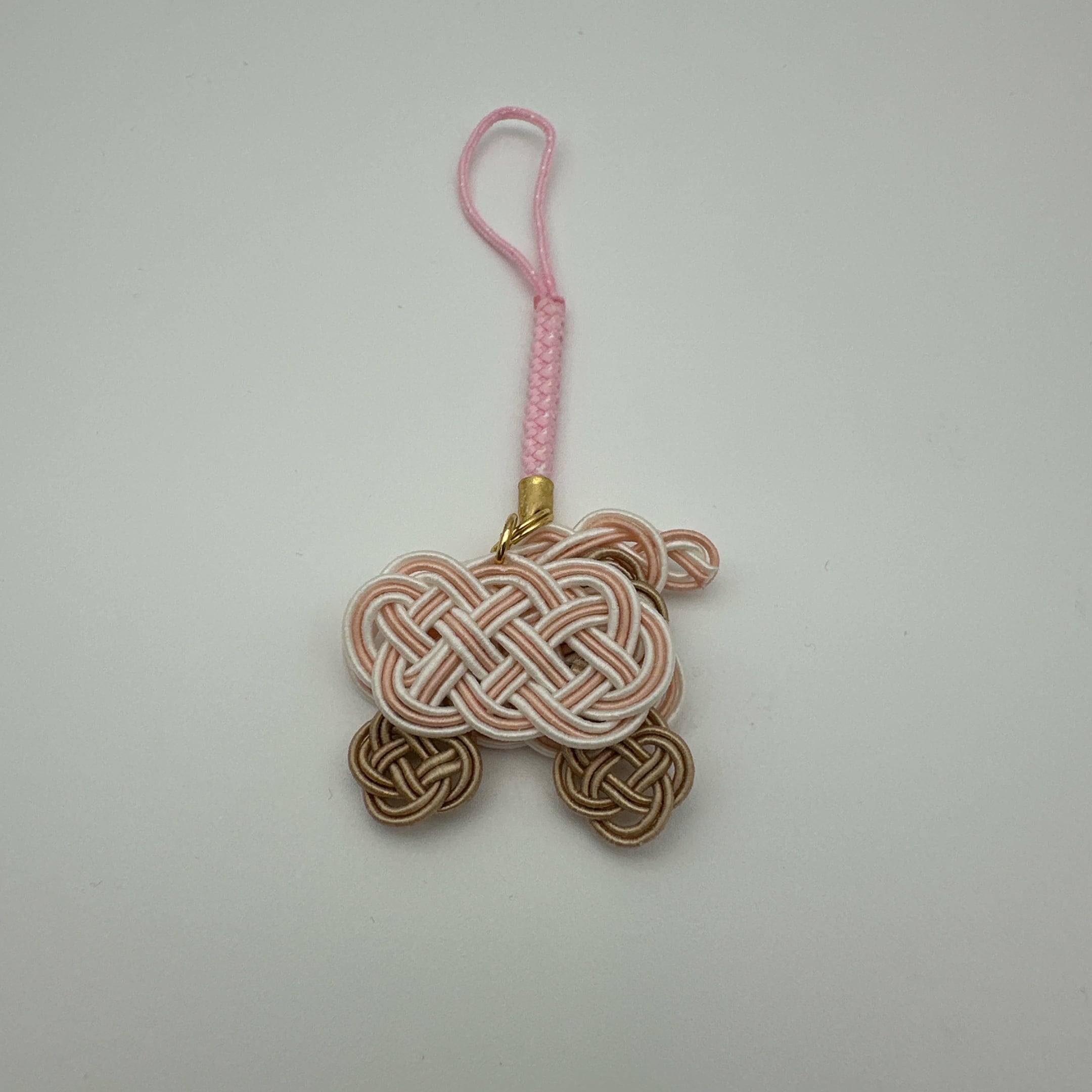 【水引】水引ストラップ (干支)未のキーホルダー ピンクと白