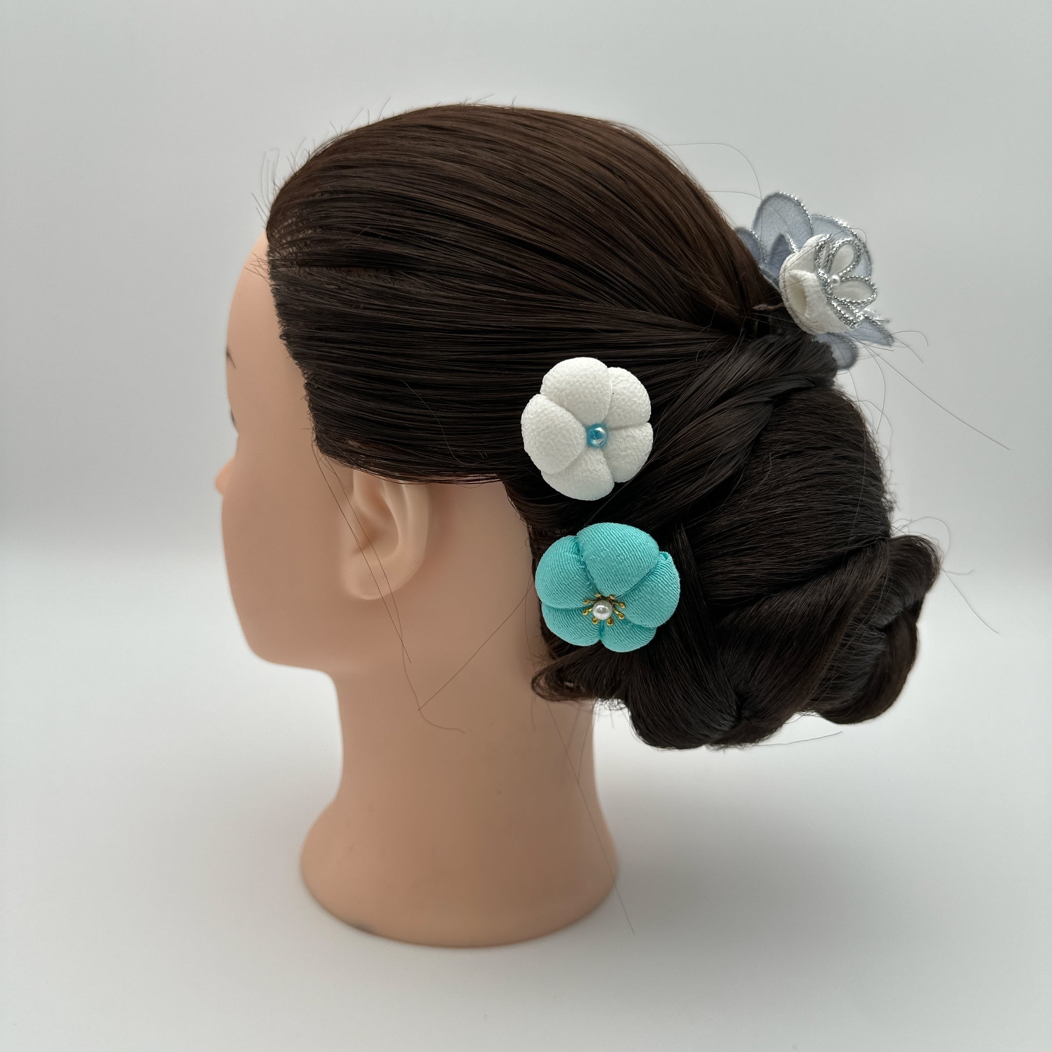 【つまみ細工のかんざしセット】かんざしセット 薄青花・水色梅・白梅・小花2本