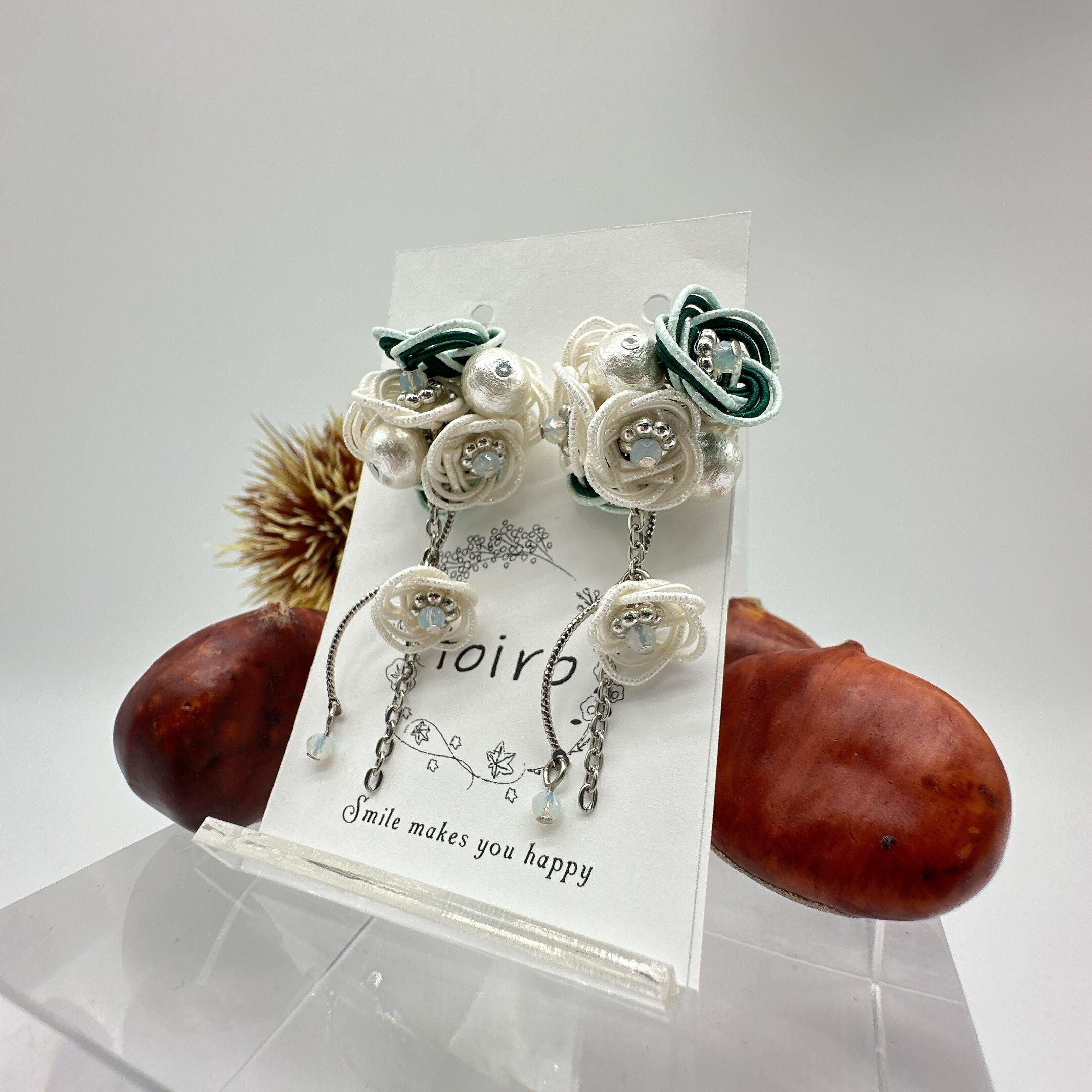 【水引ピアス】ミニブーケ ピアス グリーン×ホワイト