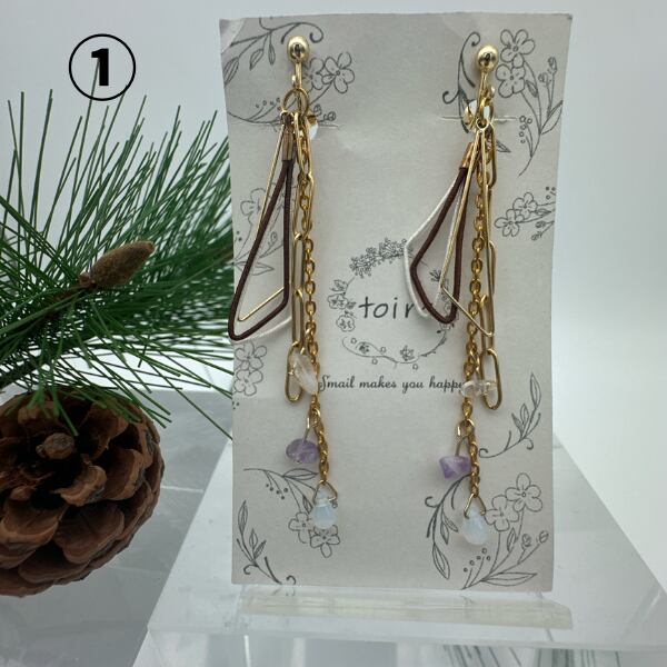 M205-1E ① キラ白×ブラウン×金具ゴールド