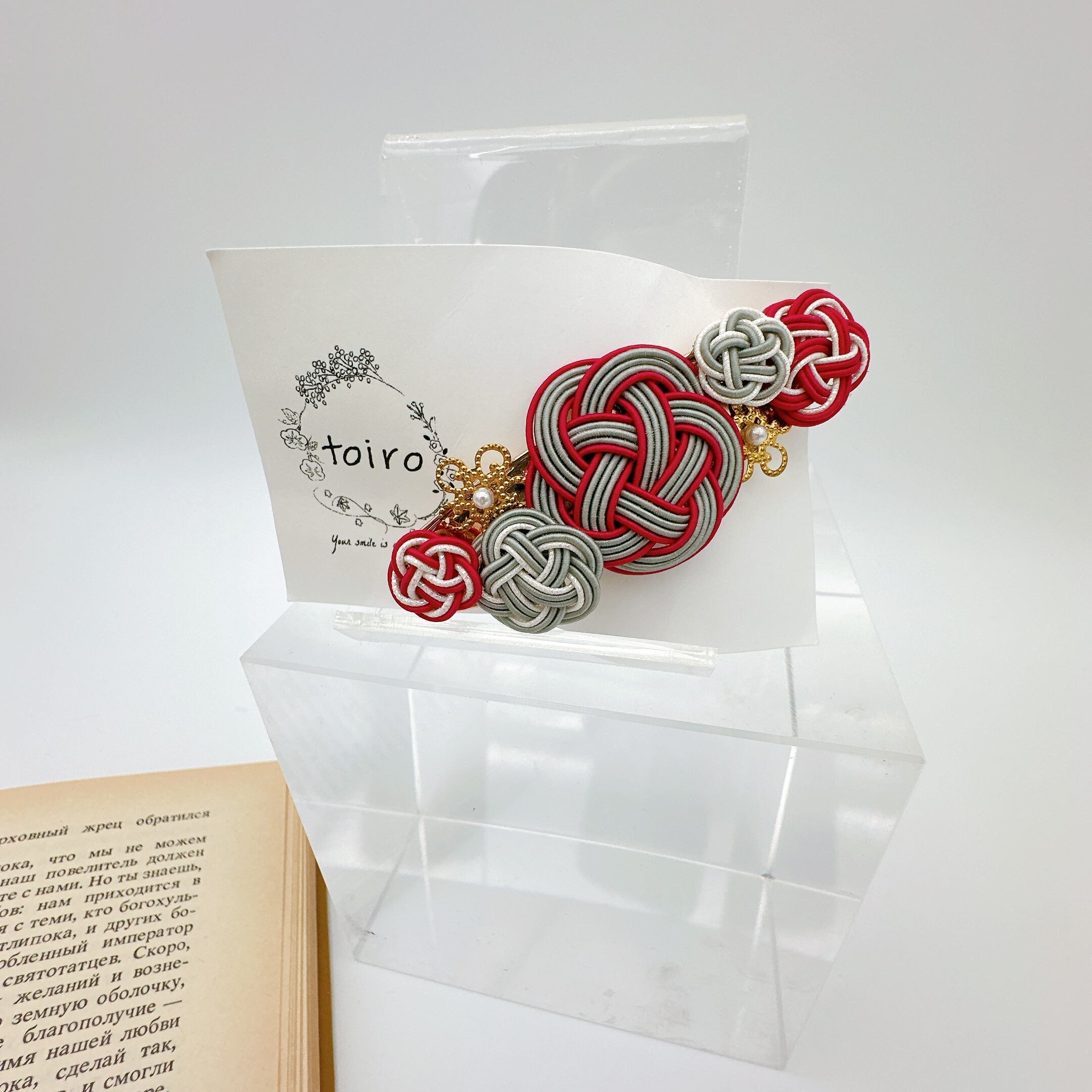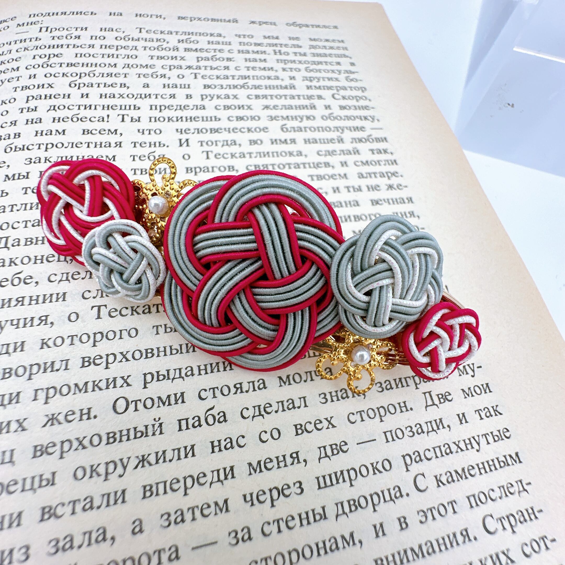 【水引バレッタ】フラワーバレッタ ボルドー×グレー
