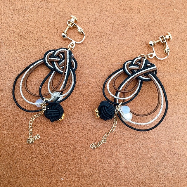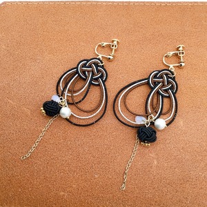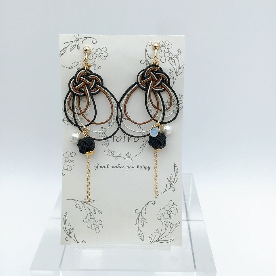 【水引イヤリング】喜梅イヤリング 黒×銀×茶