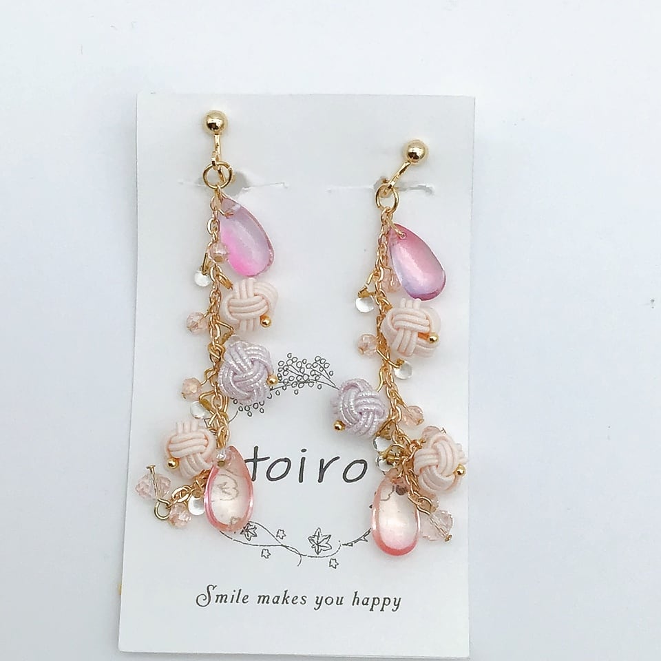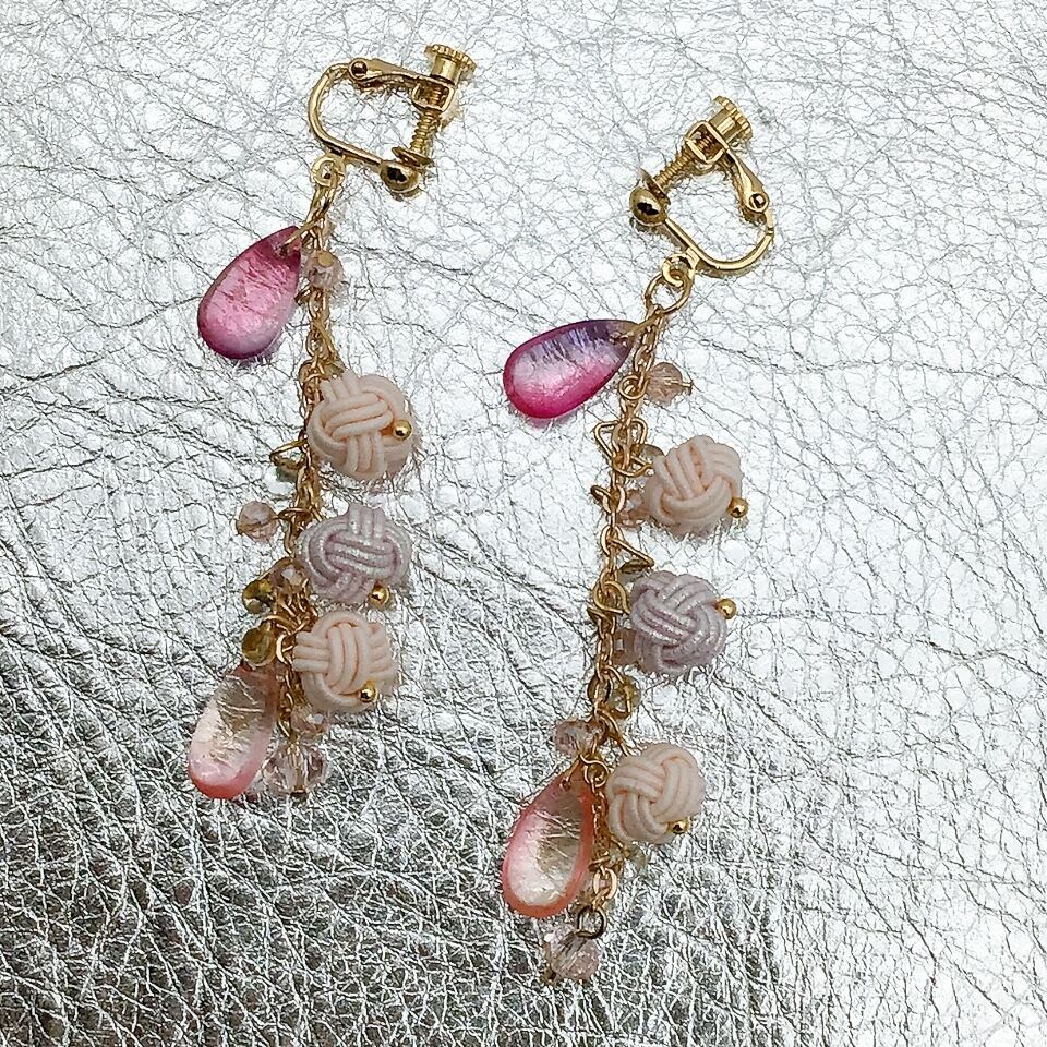 【水引イヤリング】korokoroイヤリング ピンク