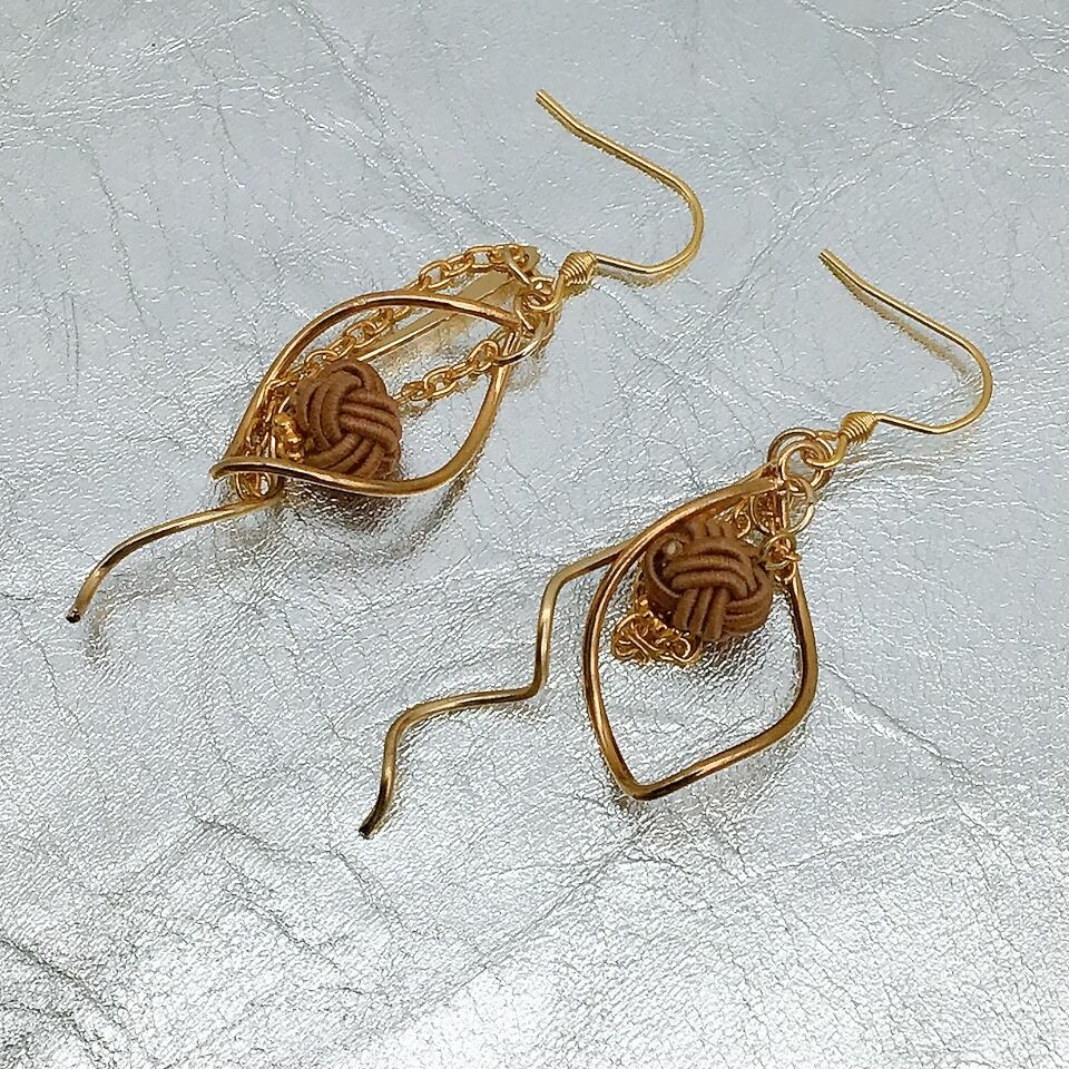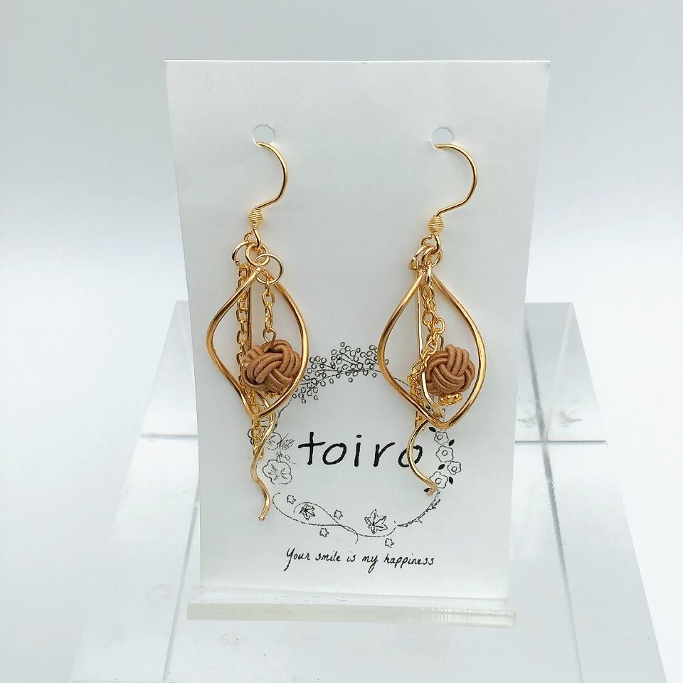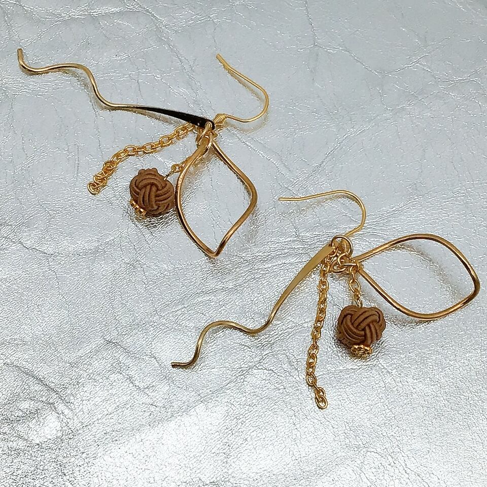 M16-28 水引ピアス 茶色×ゴールド