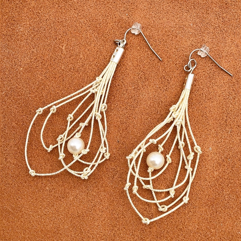 大小のサークルのところどころに結び目を作った、ちょっと異色なピアスです。