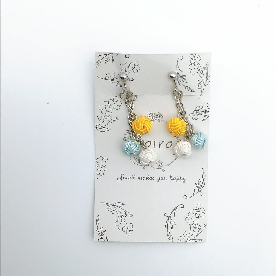 【水引イヤリング】シャンパンイヤリング ①黄×水色×キラ白