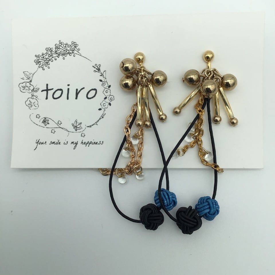 デザインのアクセントとなっているのは、ブラックと鮮やかなブルーの糸で結われた「結び玉」です。