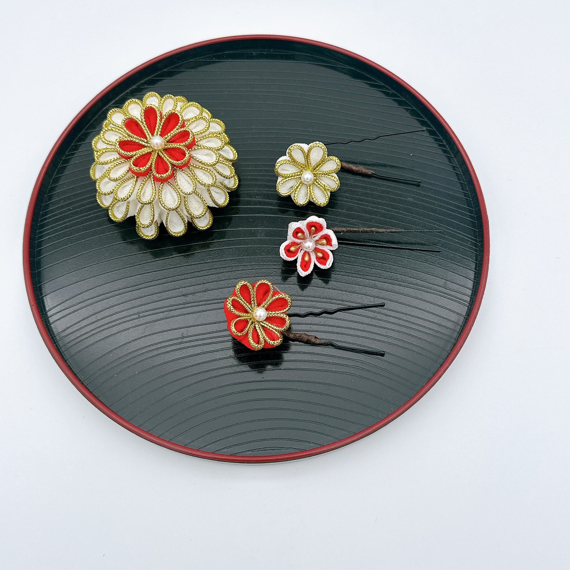 品番 T1-32 かんざしセット 白×赤×ゴールド セット