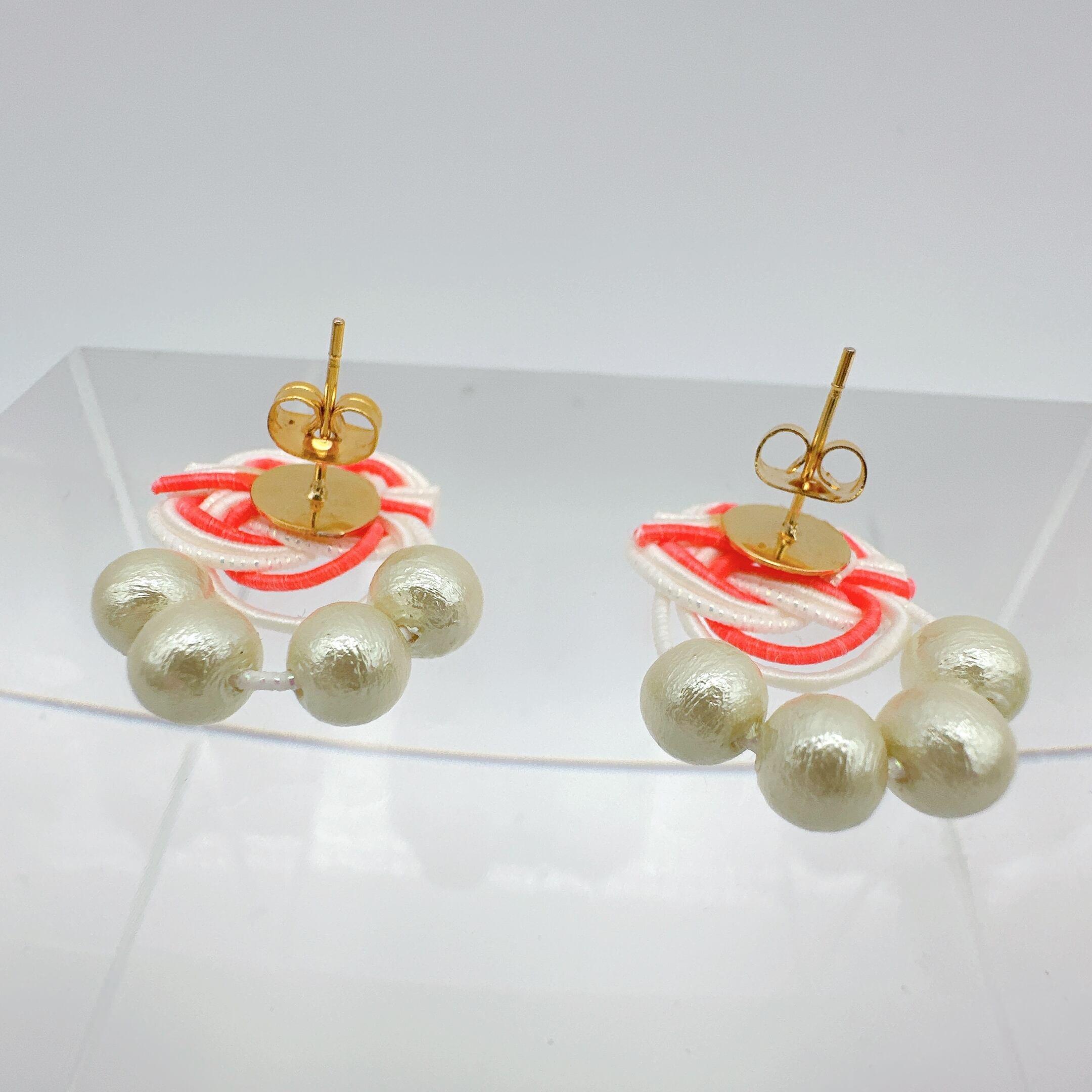 M115-5P 水引ピアス cloud(クラウド)サーモンピンク×白×白キラ