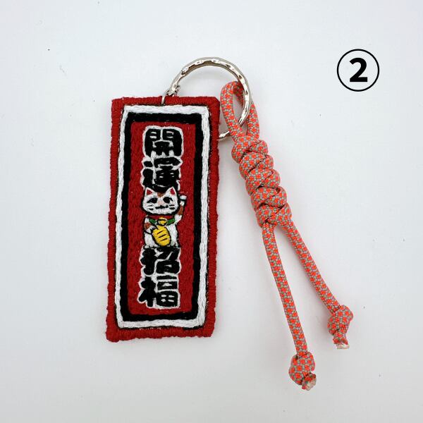 S2-24 刺繍キーホルダー 招福 紐がピンク