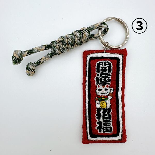S2-25 刺繡キーホルダー 招福 紐が迷彩柄