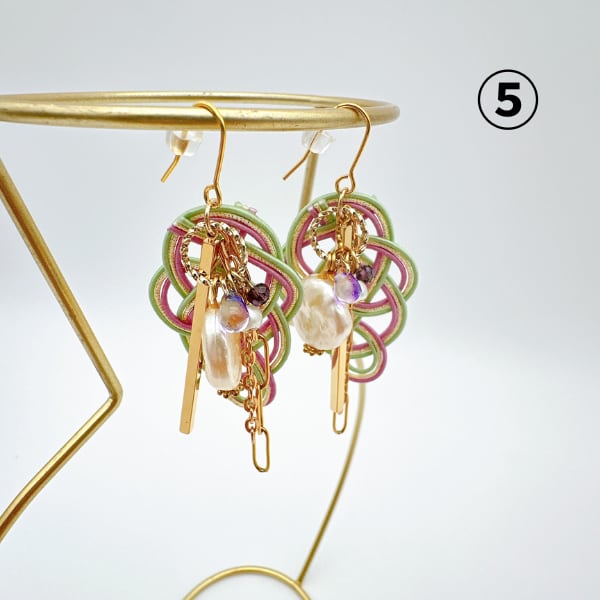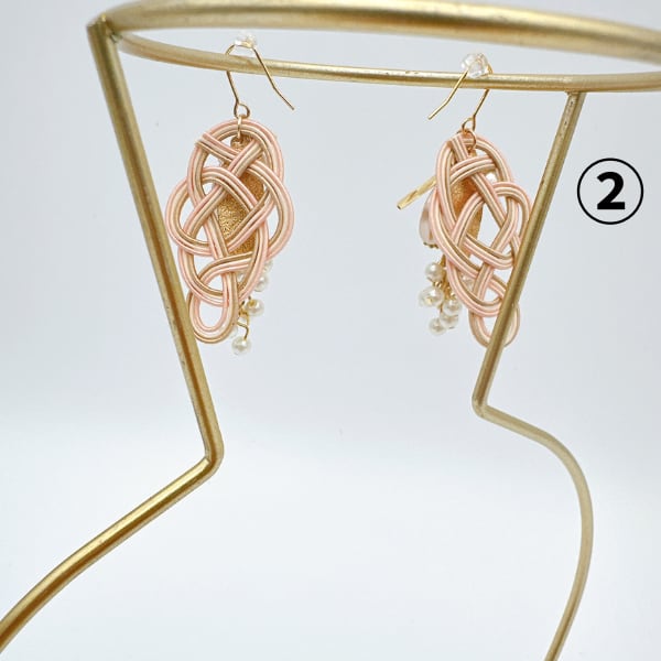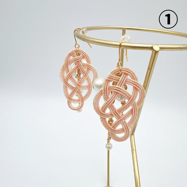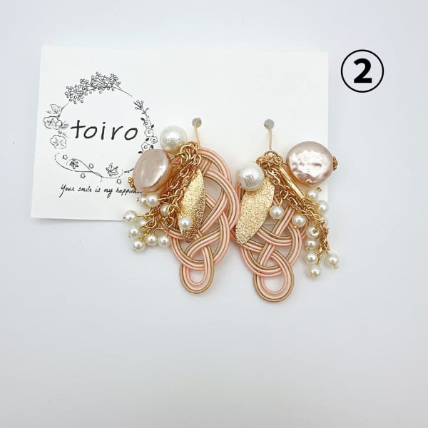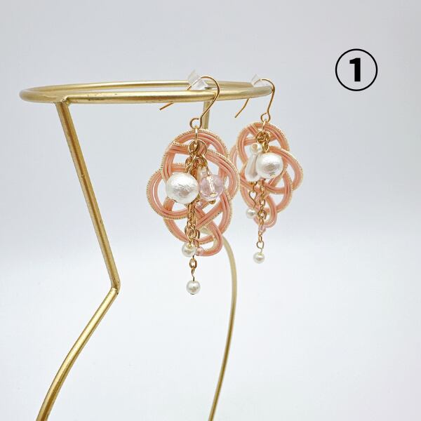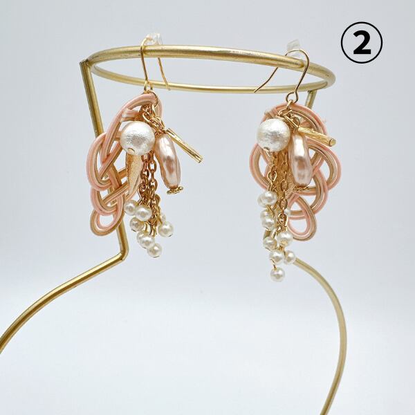 ①はピンクとゴールドが華やかでコットンパールが美しく配置されています。