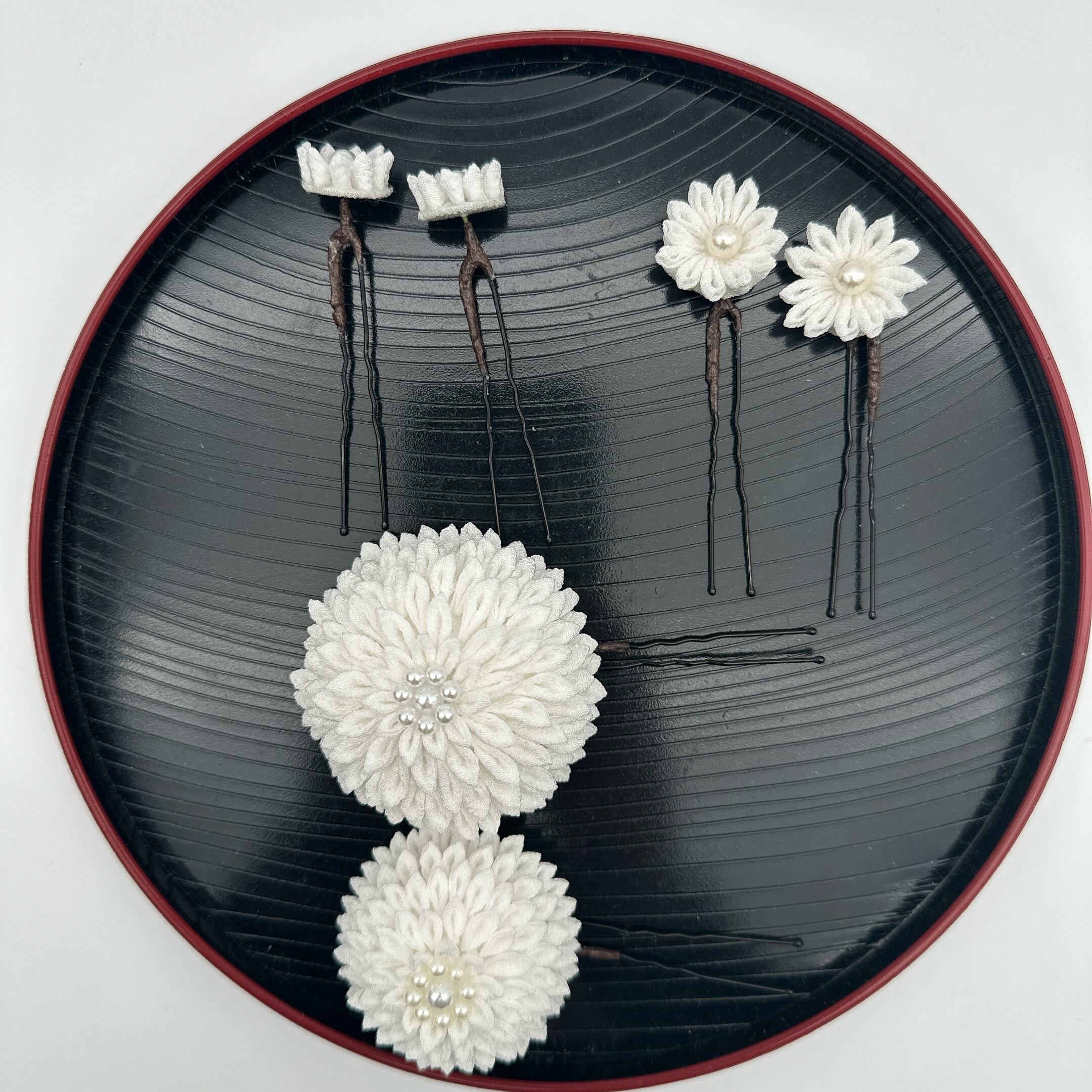 こちらは白を基調にした、上品で清楚な印象のかんざしセットです。