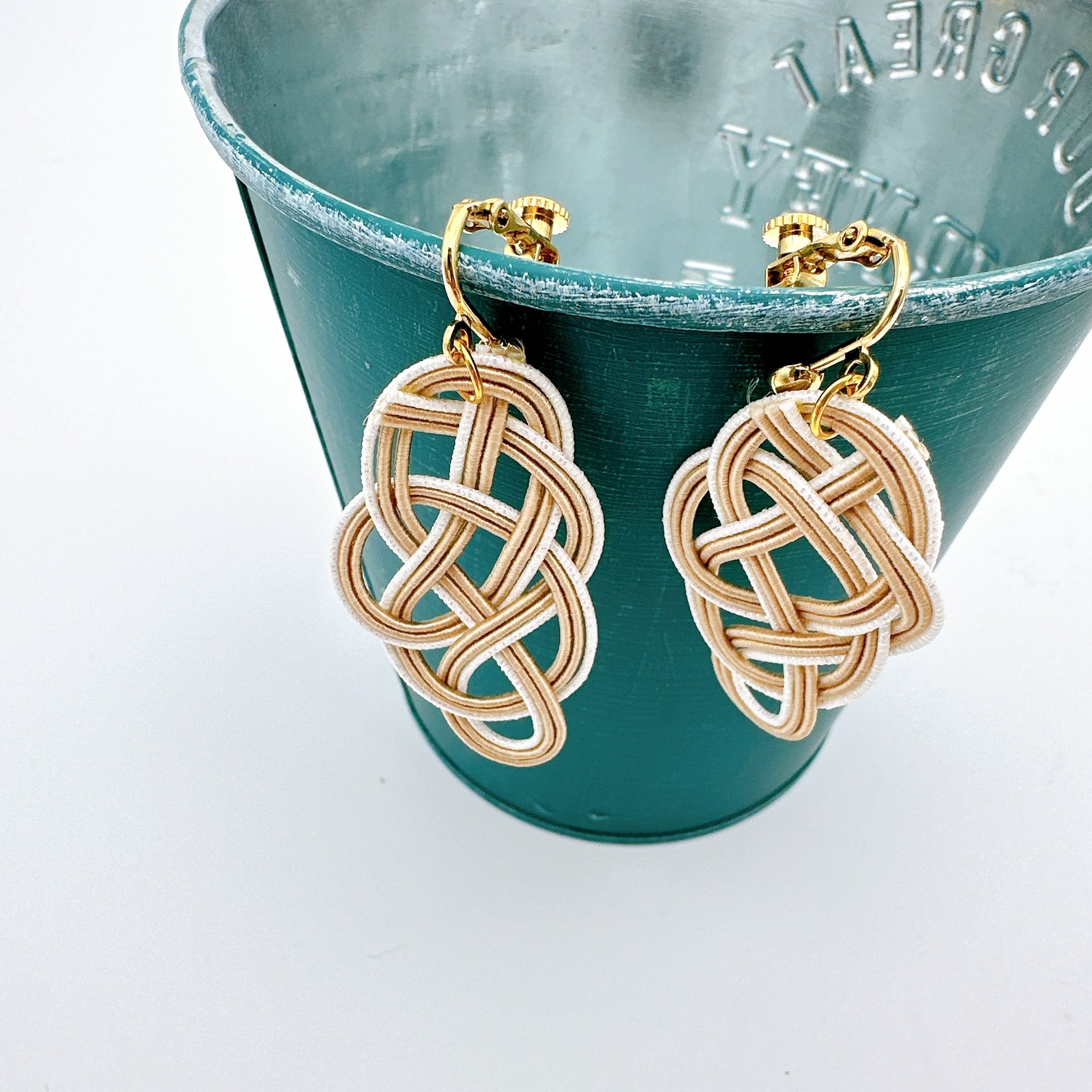 【綾(あや)シリーズ】綾イヤリング ベージュ×キラ白