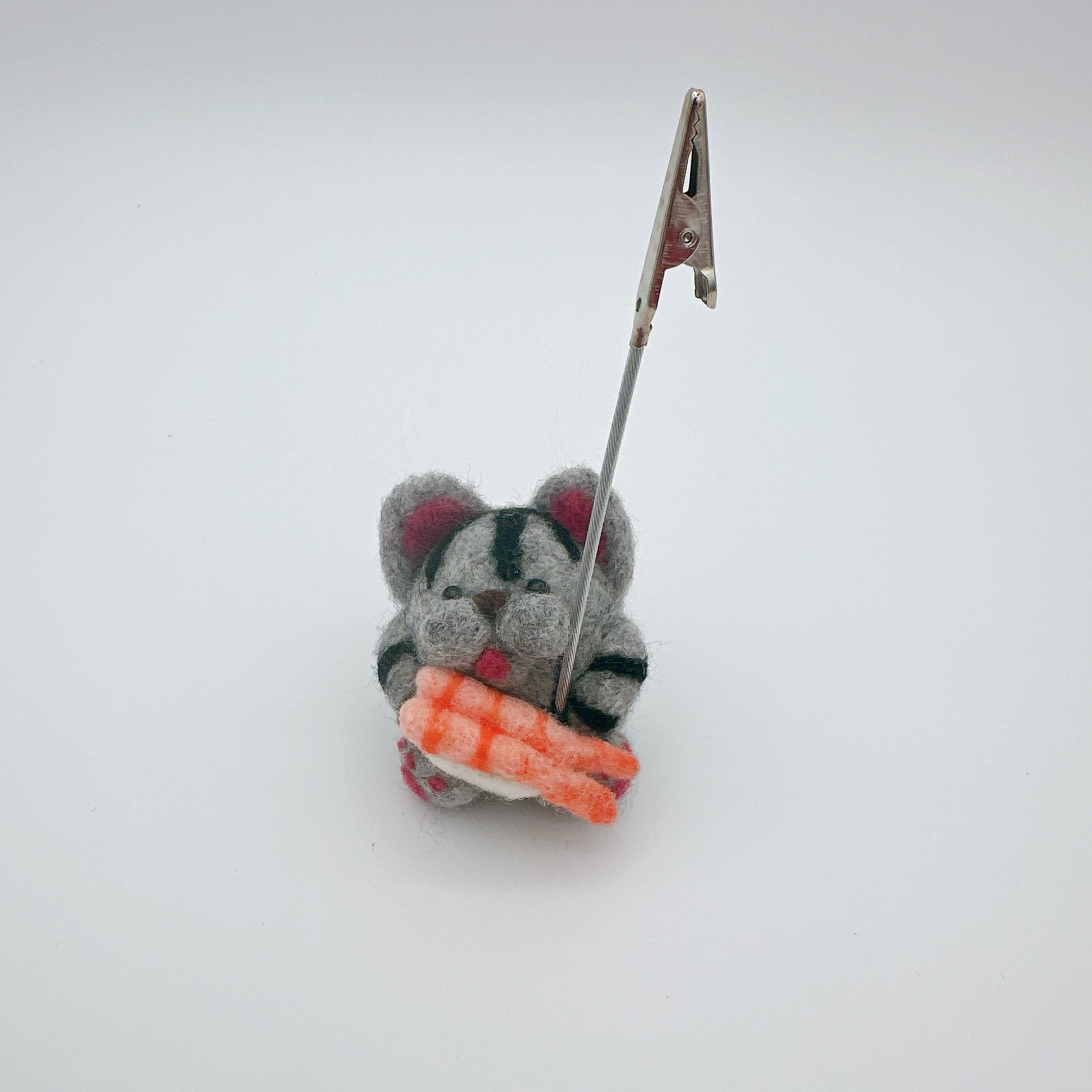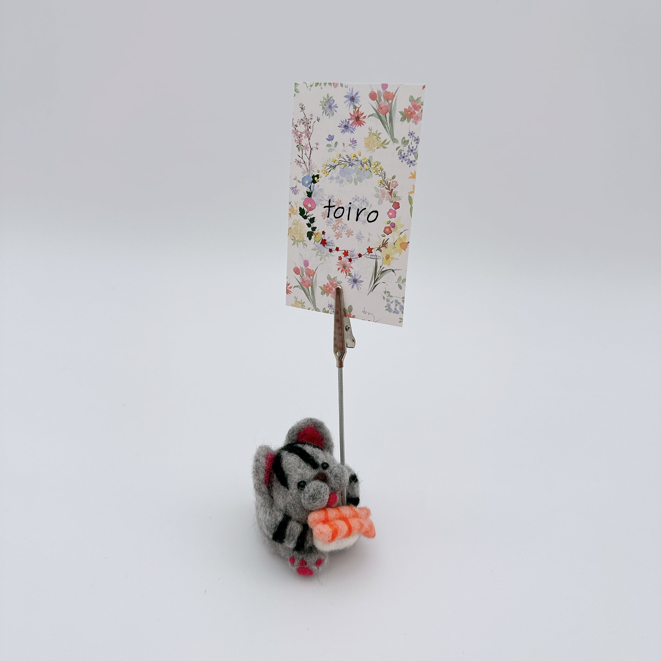 グレーの猫ちゃんも美味しそうなお寿司と一緒にメモを守ってくれます。