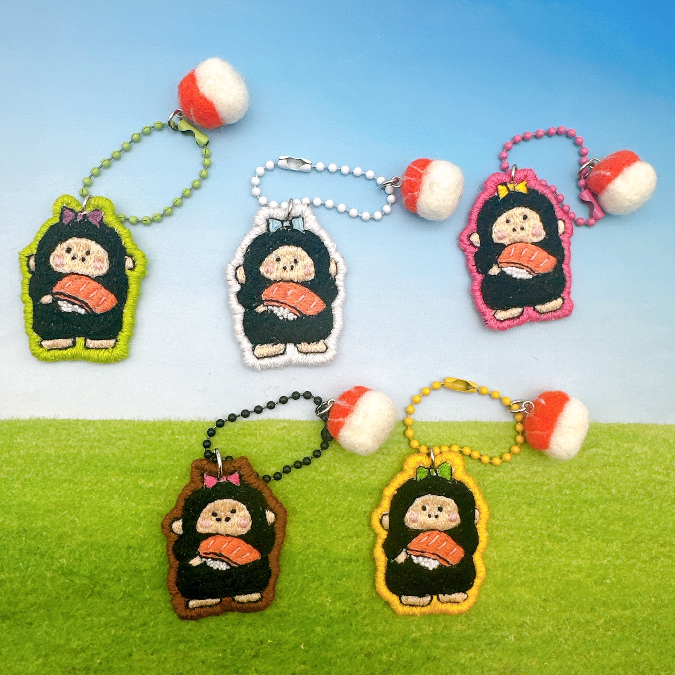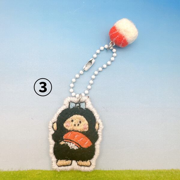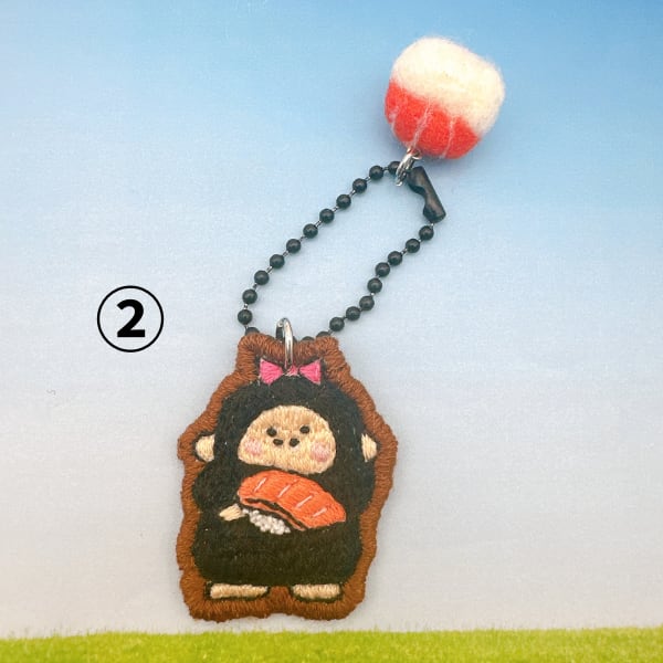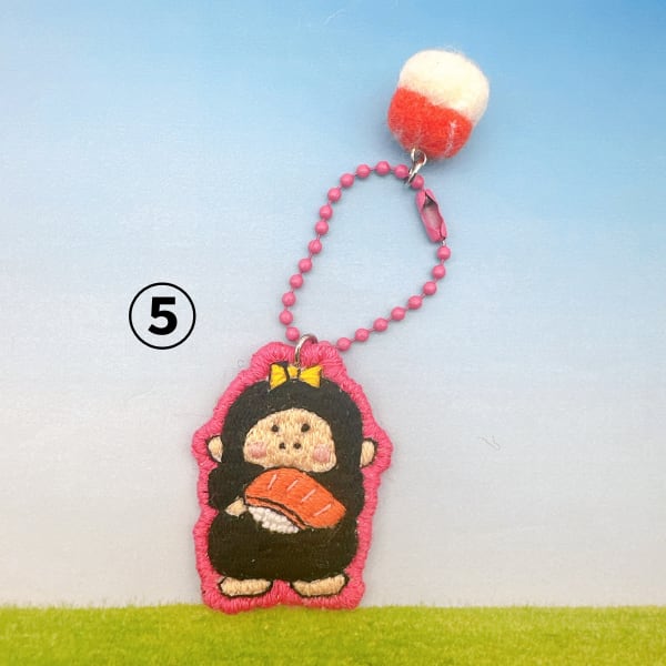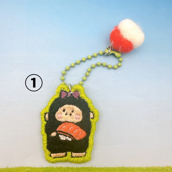 【Y132-18】羊毛×刺繡キーホルダー 寿司 ゴリ子(サーモン)①黄緑 ②茶 ③白 ④黄 ⑤ピンク