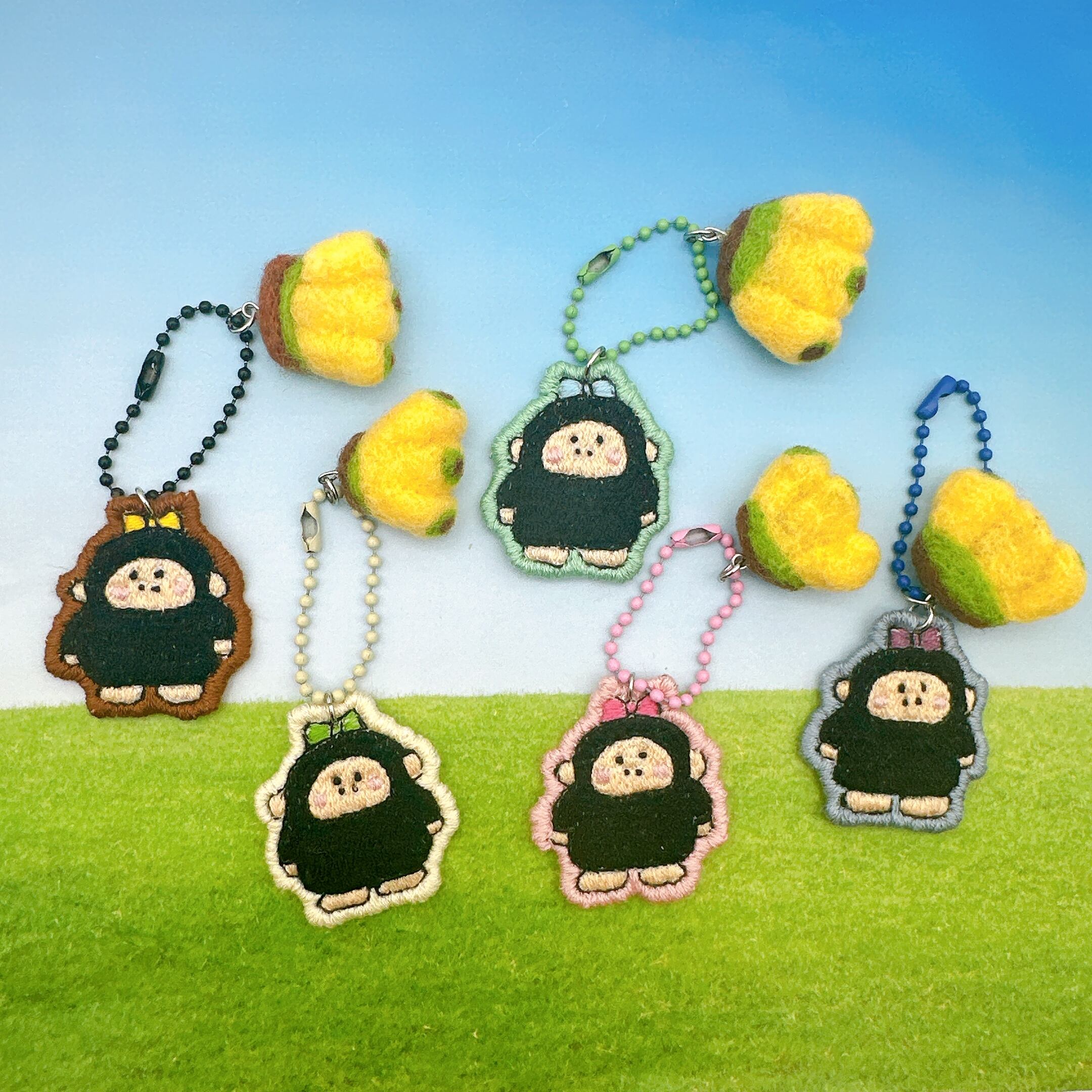【ゴリ山家シリーズ】羊毛×刺繡キーホルダー ゴリ子(バナナ)