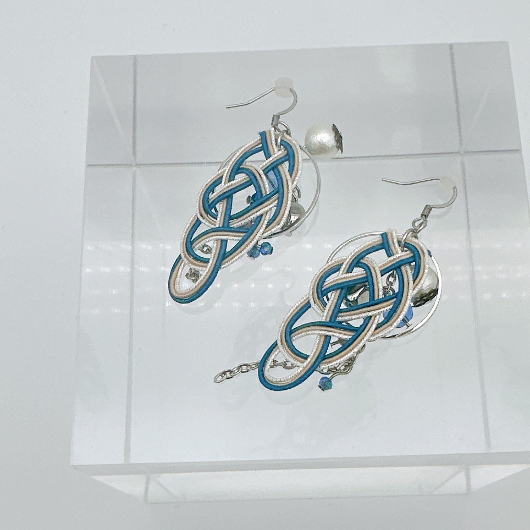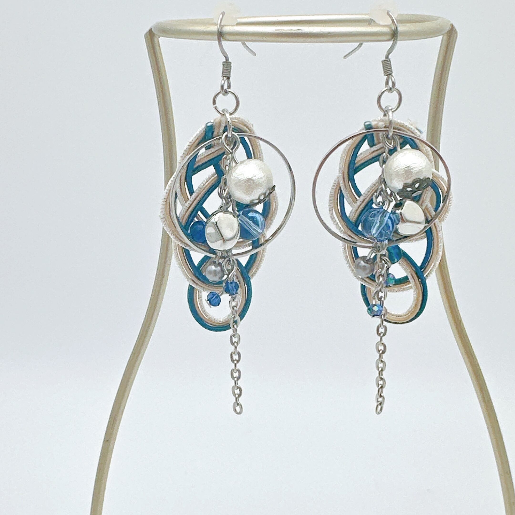 【綾(あや)シリーズ】綾ピアス 青×ベージュ×ゴールド